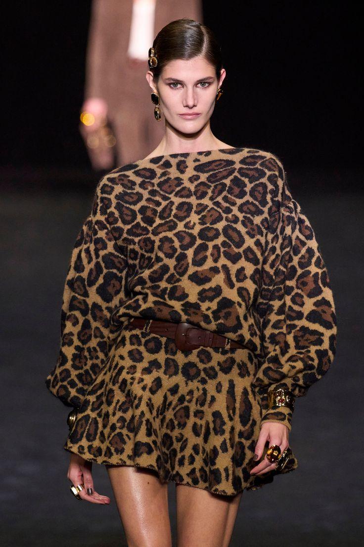在2025年的秀场上,设计师们将豹纹这一经典元素以全新的方式呈现,创造出了一系列令人瞩目的时尚设计。设计师Chitose Abe在2025春夏系列中继续玩转结构设计,夹克、裙装、羊毛衫、双排扣军装外套等单品通过结构变化拥有了立体廓形。在这些设计中,豹纹印花图案再次印证了经典即流行的理念。豹纹被巧妙地运用在裙装、外套等多种服饰上,展现出一种野性与优雅的完美结合。Ana Silvia不仅保留了豹纹的野性魅力,还通过结构设计为豹纹服饰增添了更多的层次感和立体感,使其在保持经典韵味的同时,又呈现出全新的时尚风貌。