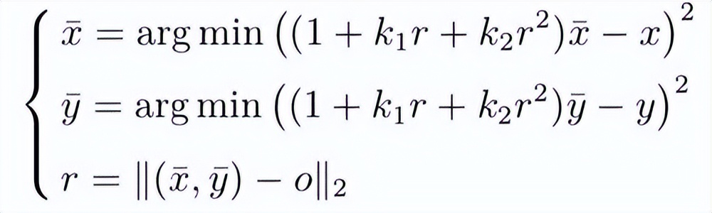 目前有很多畸变建模使用的是畸变参数k1,k2表示的畸变公式: