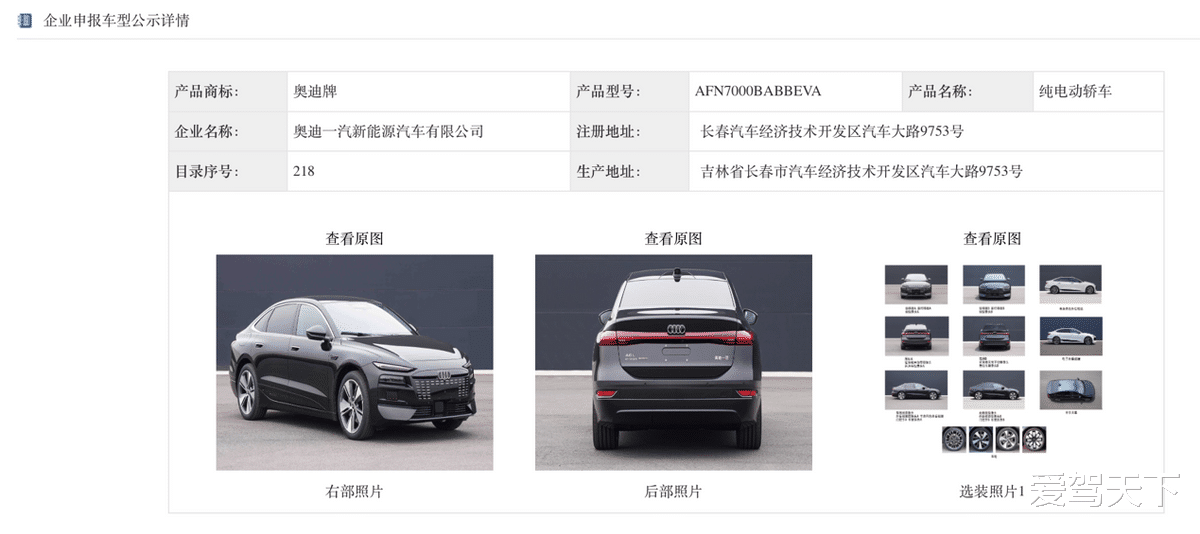上一篇文章我们讲到奥迪A6L更新换代,其实此次亮相除了燃油版,奥迪A6L还带来了纯电版——A6L e-tron,新车基于PPE平台打造。这次,奥迪A6L e-tron申报的是四驱版车型,而两驱版早在几个月前已完成申报,看来距离正式开卖的时间不远了。