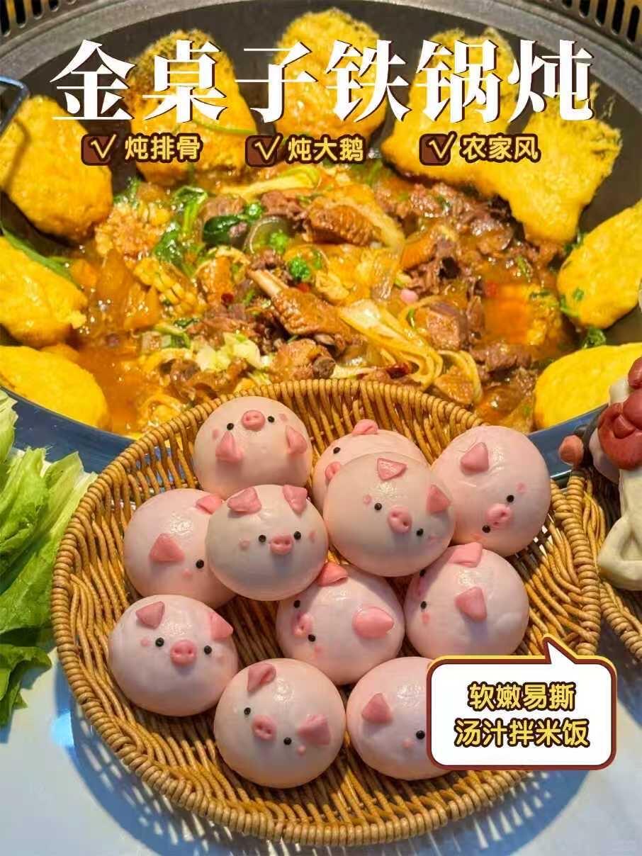 5️⃣ 【金桌子铁锅炖】🥘入秋吃这个太合适了!我和家人去过两次,炖排骨、大鹅都是现点现做,味儿很足。肉炖得软嫩易撕,汤汁拌米饭超香。锅边的玉米饼🌽外脆里软,蘸着汤吃绝了,加些土豆、豆角吸满味道,一点不单调。店里是农家风,满是烟火气,和家人朋友围着吃,暖乎乎的超舒服。