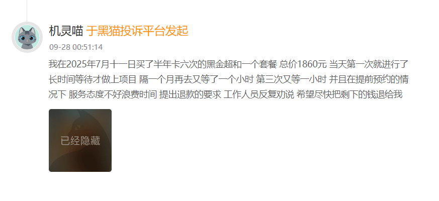 9月10日,有网友在小红书社交媒体上吐槽该机构的水光项目,该网友表示打了两组水光但没有效果,该机构售后态度也令其无奈。该网友表示,正在尝试协商退款中。