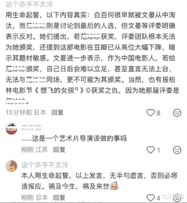考虑到文艺片导演普遍不在意所谓的“敏感”,不少网友更偏向于她在报“《想飞的女孩》柏林挂零”之仇,当时恰好她和这位艺人身份对调。