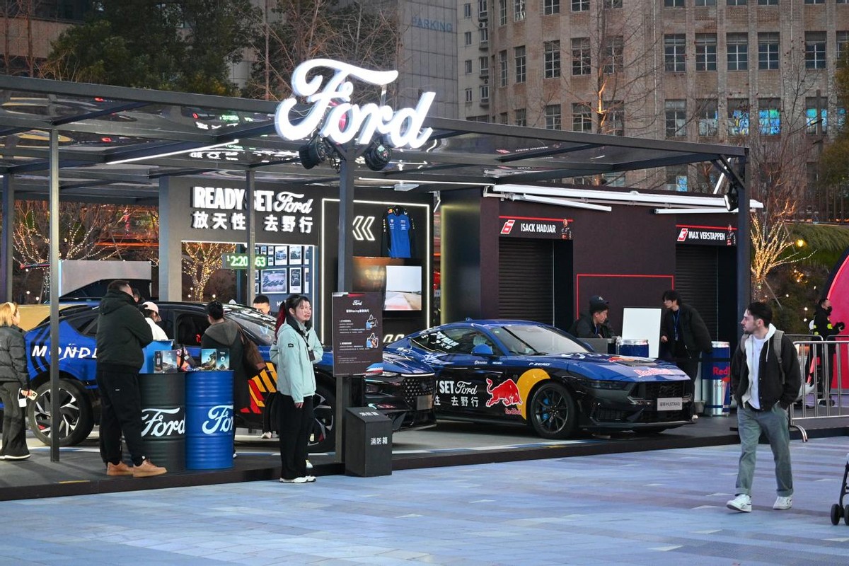 先从市中心的宝藏打卡地说起,南京东路世纪广场,福特和红牛正在这里举办活动,在这里最火的项目,就是神仙刘亦菲同款赛车换胎模拟器,拿起启动扳手,对准轮胎螺母,瞬间成为一名红牛车队技师,叫朋友拍照发圈,分分钟出圈。