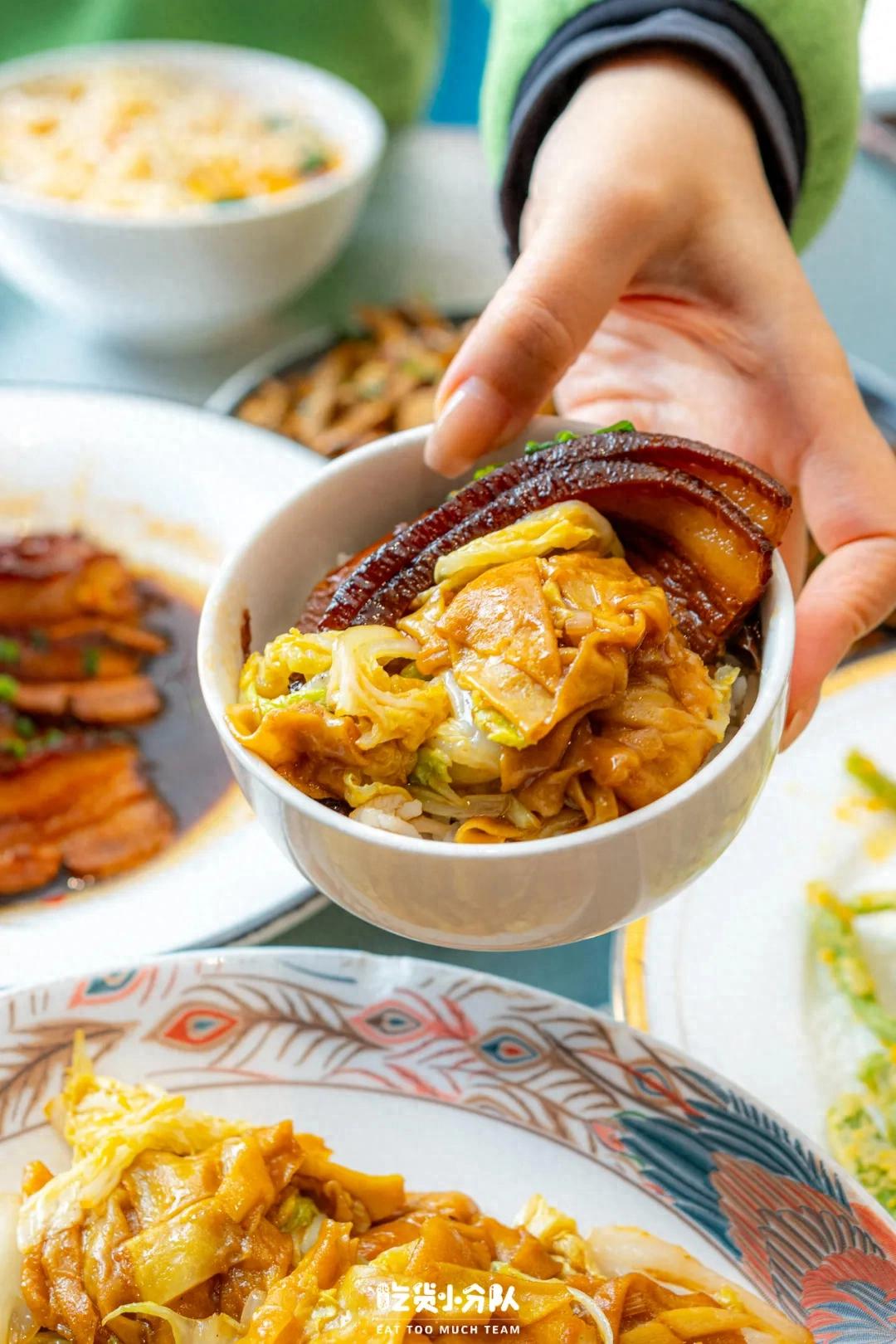 饹馇(ɡē zha)就是把绿豆面儿摊成薄饼状的一种小吃,也是唐山的传统特色。其名相传源于清代慈禧太后用膳时说“搁着”的谐音,后成为宫廷贡品,还衍生出炸、炒、烩等多种做法。糖醋饹馇就是冀东流派的代表菜之一。【白菜大饹馇】属于烩菜,也是店里的招牌~