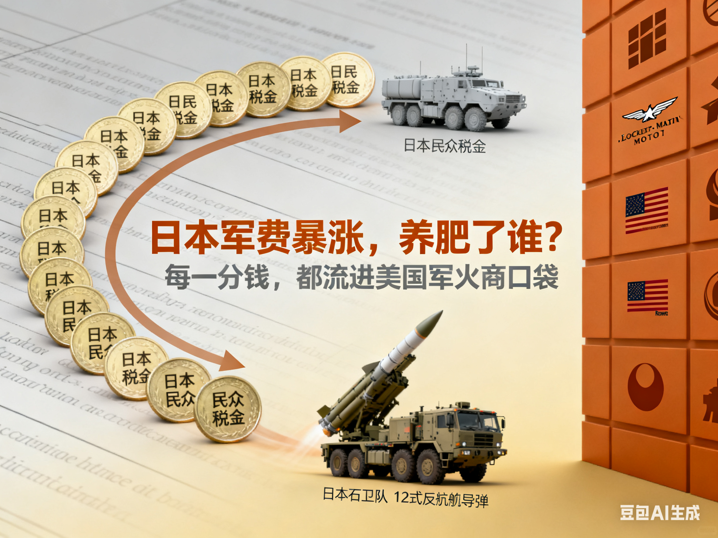 “局内人”翻译:我们要把军费GDP占比提升到2%,这个钱从哪来?从日本民众的税收和国债里来。花到哪去?看看军购清单就知道了:美国的F-35战斗机、美国的“战斧”巡航导弹、美国的“宙斯盾”系统。 每一分钱,都精准地流入了洛克希德·马丁、雷神这些军火巨头的口袋。