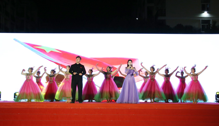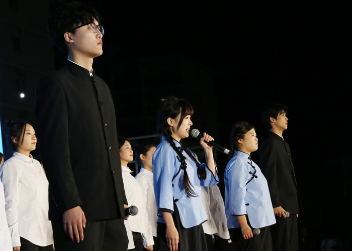 台上台下师生齐声高歌《歌唱祖国》,用嘹亮的歌声祝福伟大祖国繁荣昌盛,为本次文艺汇演画上圆满句号。