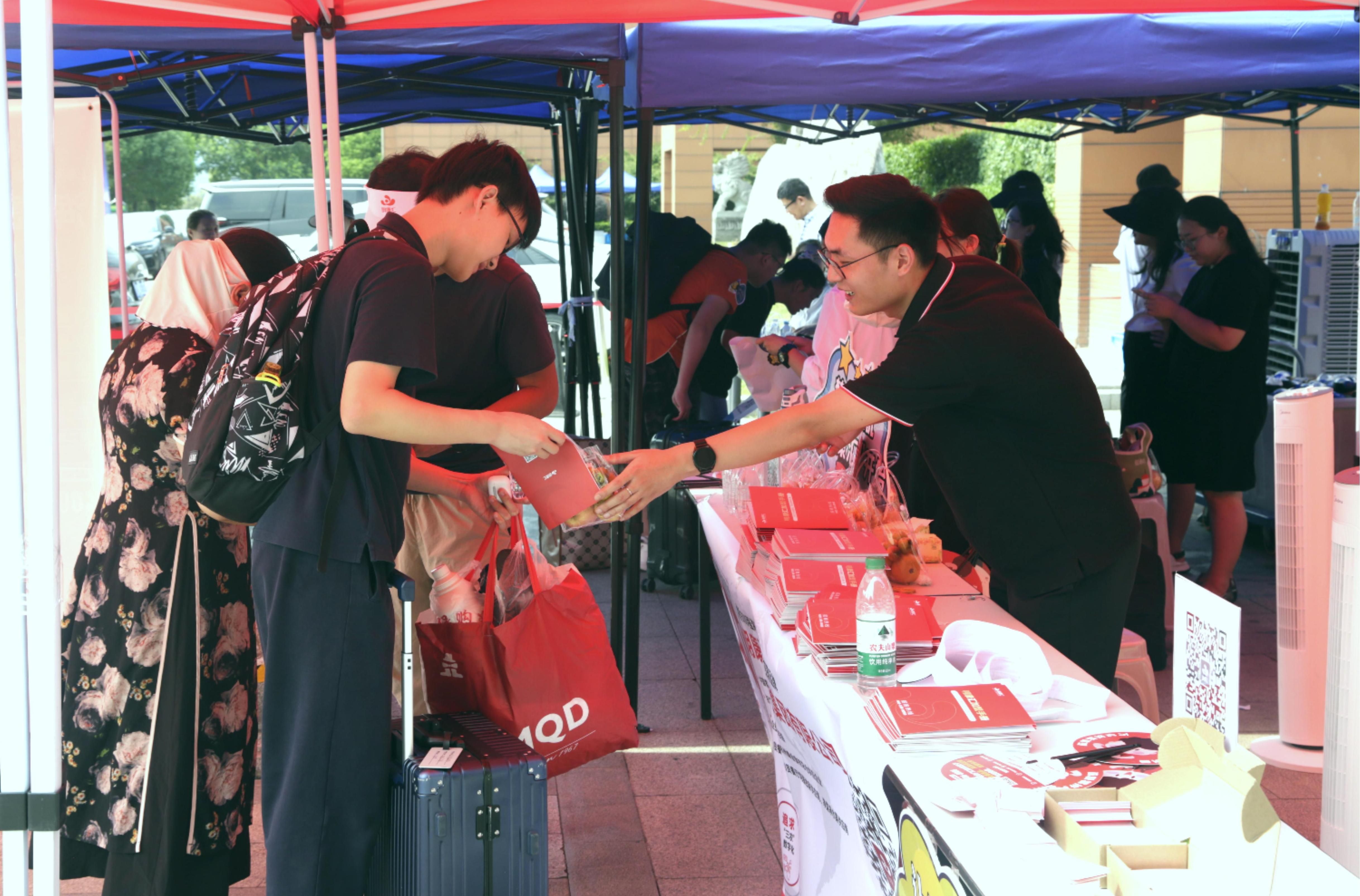 开学季已至,海亮学子迎来了全新的学年。报道日当天,骄阳似火,高温酷暑也挡不住海亮学子返校的热情,大家带着对新学期的期待与对知识的渴望走入教室。与往年不同的是,今年的校园内外多了一抹耀眼的“红色”——海亮明康汇的伙伴们走进校园,精心准备开学礼包迎接海亮家长与学子们。