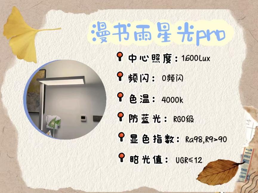 显色指数Ra99,无限还原自然光,大而精,细分光谱,实现全龄段精准护眼。采用的二氧化钛棱晶板,可以去菌除甲醛,净化空间,进行从护眼照明到身心健康的革新。人体工学悬浮灯杆,实现科技与美学的完美结合。