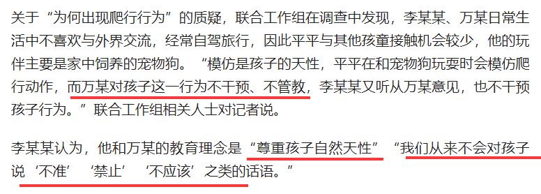 咱普通人养孩子,都知道要教他站着走路、穿衣吃饭、懂礼貌,可平平的父母觉得 “少干预才好”,连孩子模仿动物爬行都不纠正。再加上他们拒绝和外界沟通,面对质疑只说 “别管家事”,才让误会越积越深,最后引发全网猜测。