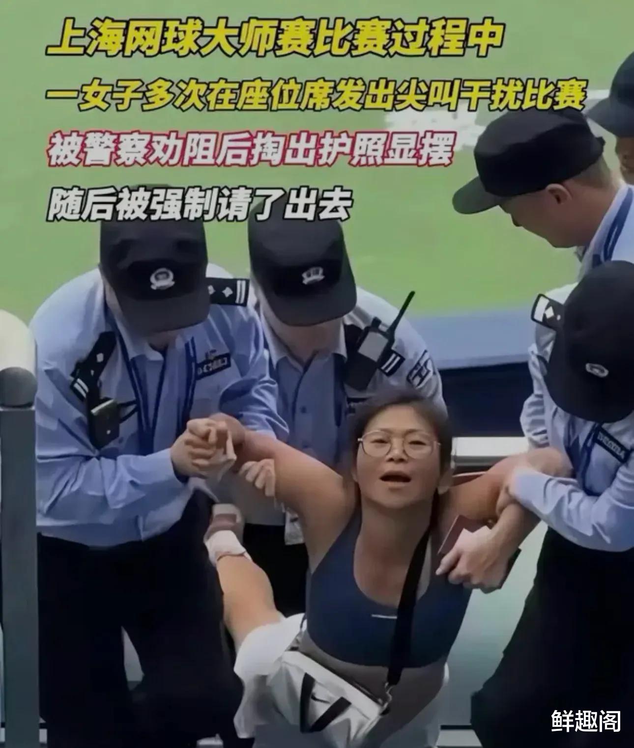 她站在看台上蹿下跳大喊大叫,声音洪亮到能穿透整个赛场。球员不堪其扰,一名球员接连发球失败,主裁判一脸愤怒,最终不得不叫停比赛。随即现场安保人员接到通知后前来耐心劝说,谢某某却变本加厉。她沉浸在自己的世界里,嘚瑟地手舞足蹈,欢呼呐喊,摆出“你能拿我怎么样”的态度。