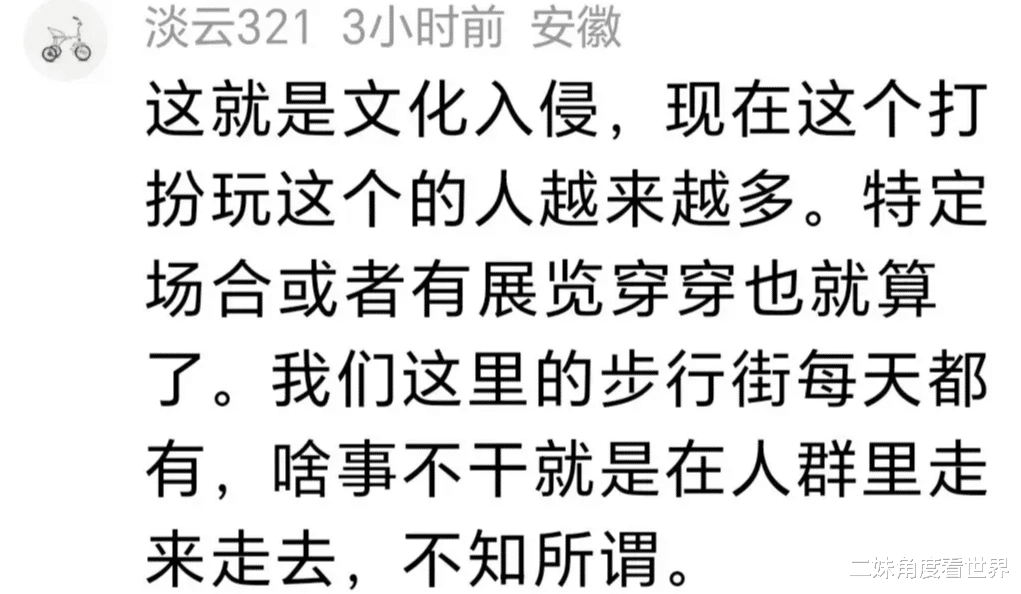 我对身穿和服行走在街头的行为也感到愤怒,但文化入侵和文化交流是两种概念,一个人喜欢某些动漫人物,并不耽误他爱国,一点也不矛盾