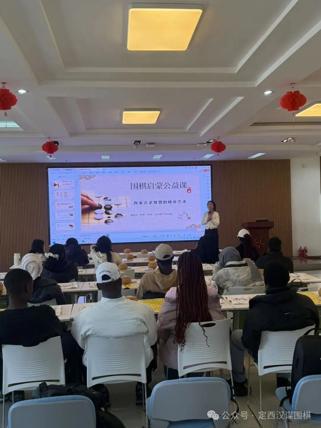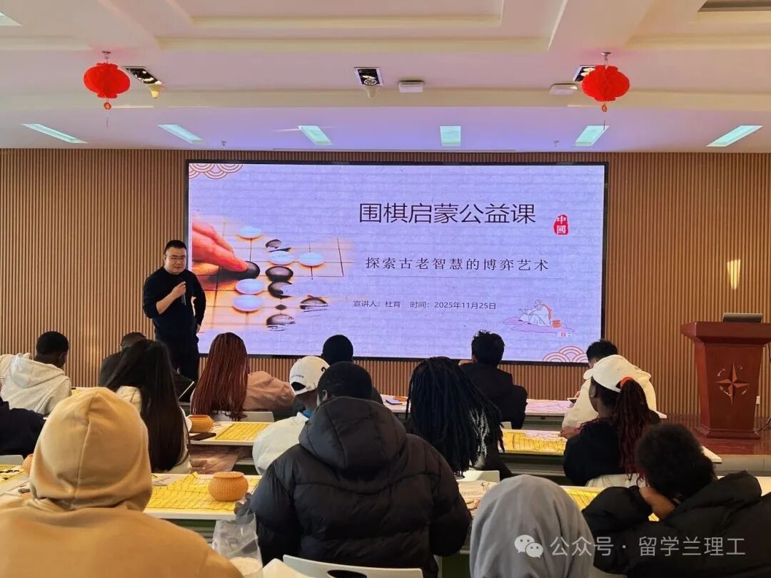 兰州理工大学国际教育学院特邀汉谋围棋,于2025年11月25日下午,在《中国文化》课堂,围棋启蒙公益课顺利进行,并取得圆满成功!