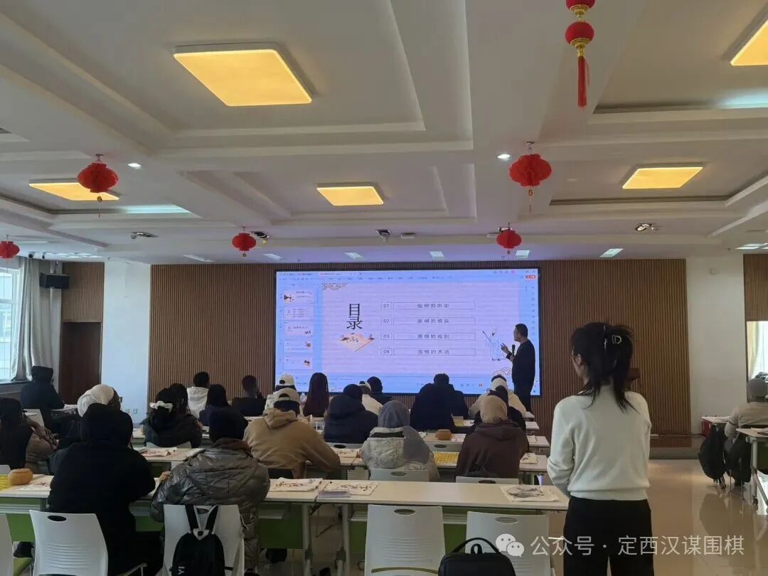 活动开场,甘肃汉谋围棋的授课老师杜育用通俗的语言讲解围棋的起源、历史、基本规则与文化内涵,从“尧造围棋,以教丹朱”的传说,到其作为“琴棋书画”四艺之一的地位,内容引发学生浓厚兴趣。