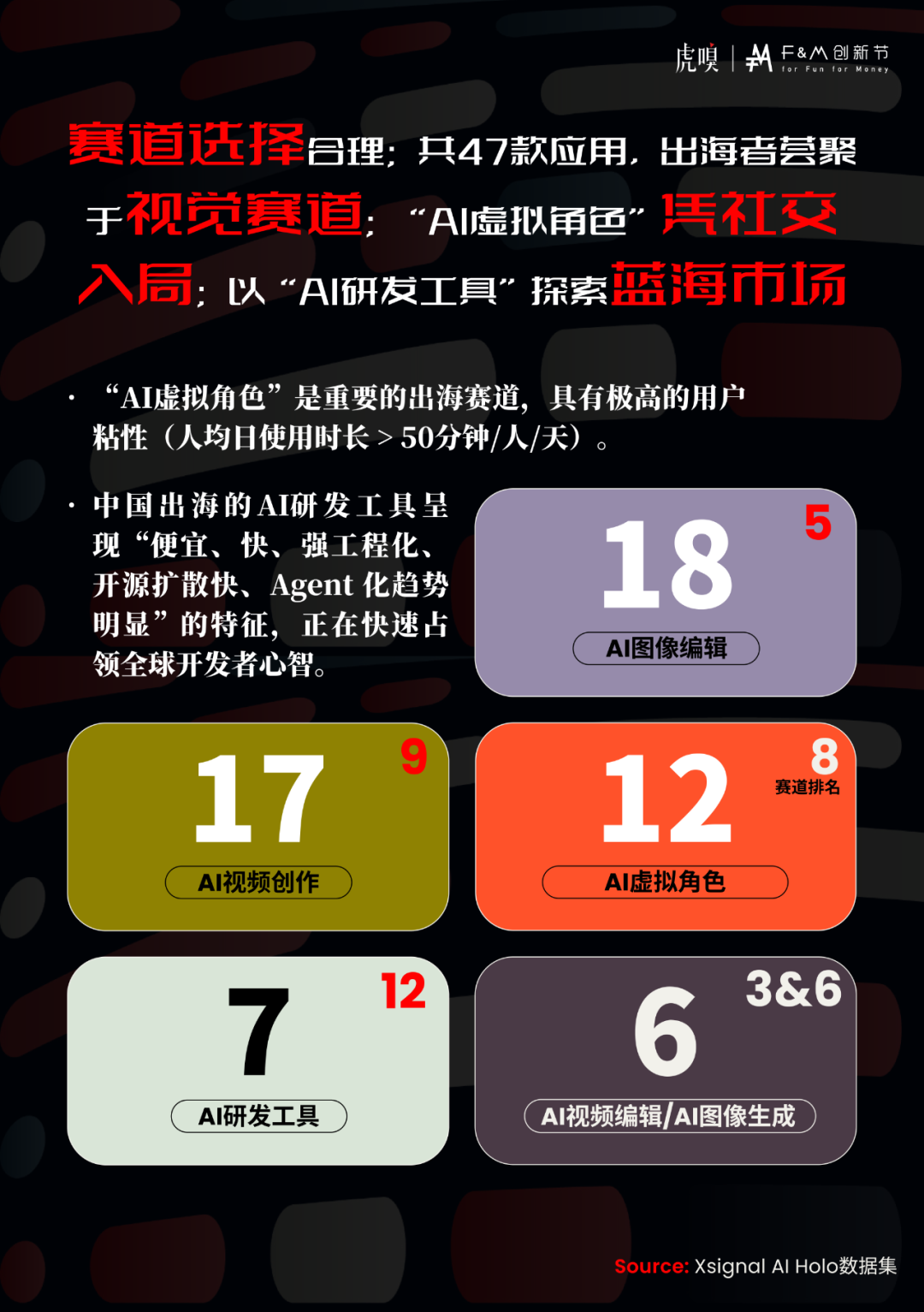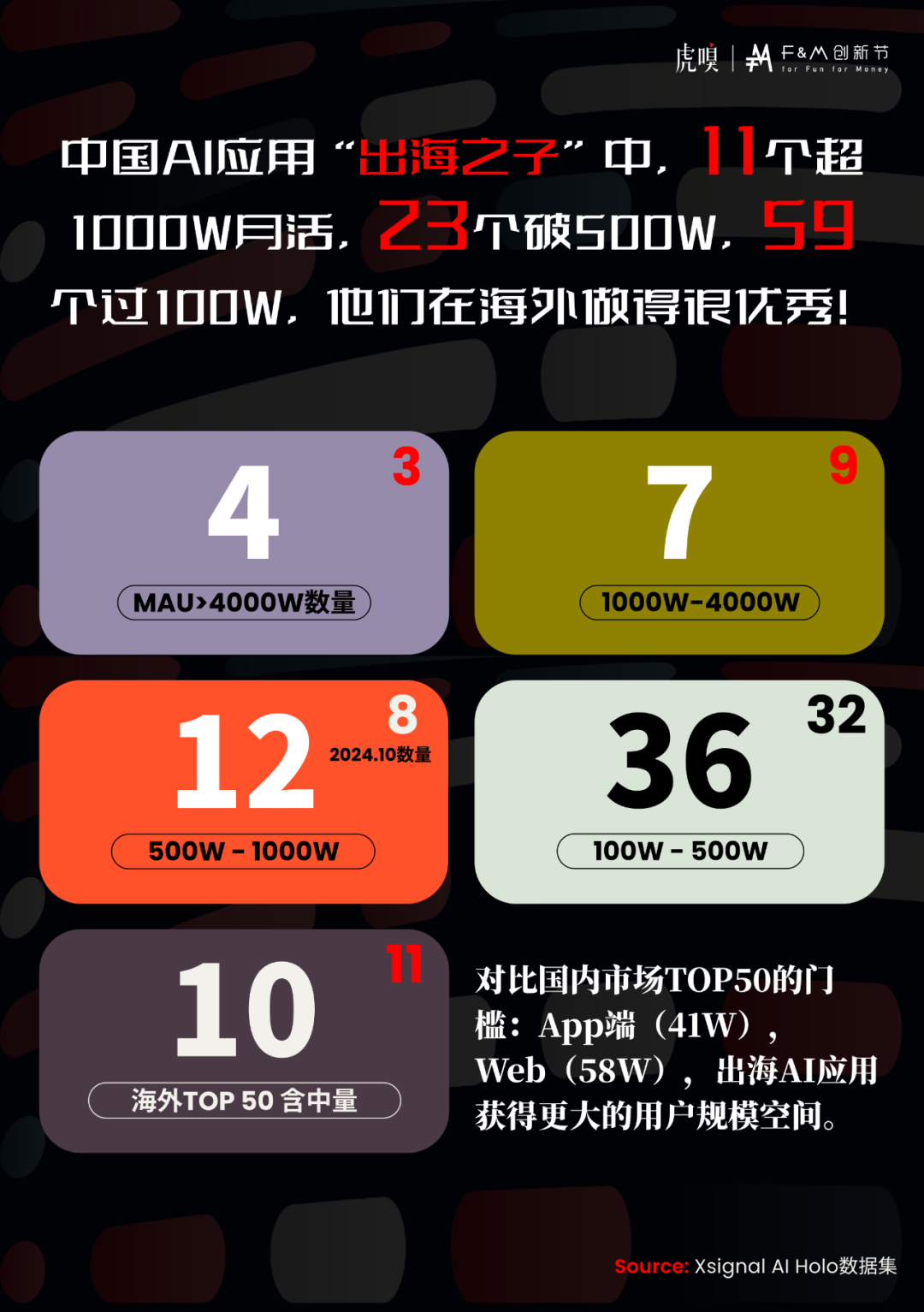 国内市场TOP50的入围门槛仅为APP端 41万、Web端 58万 MAU;而AI出海应用的百万级常态化,证明了海外市场拥有更高的天花板,是比移动互联网更大的时代机遇。