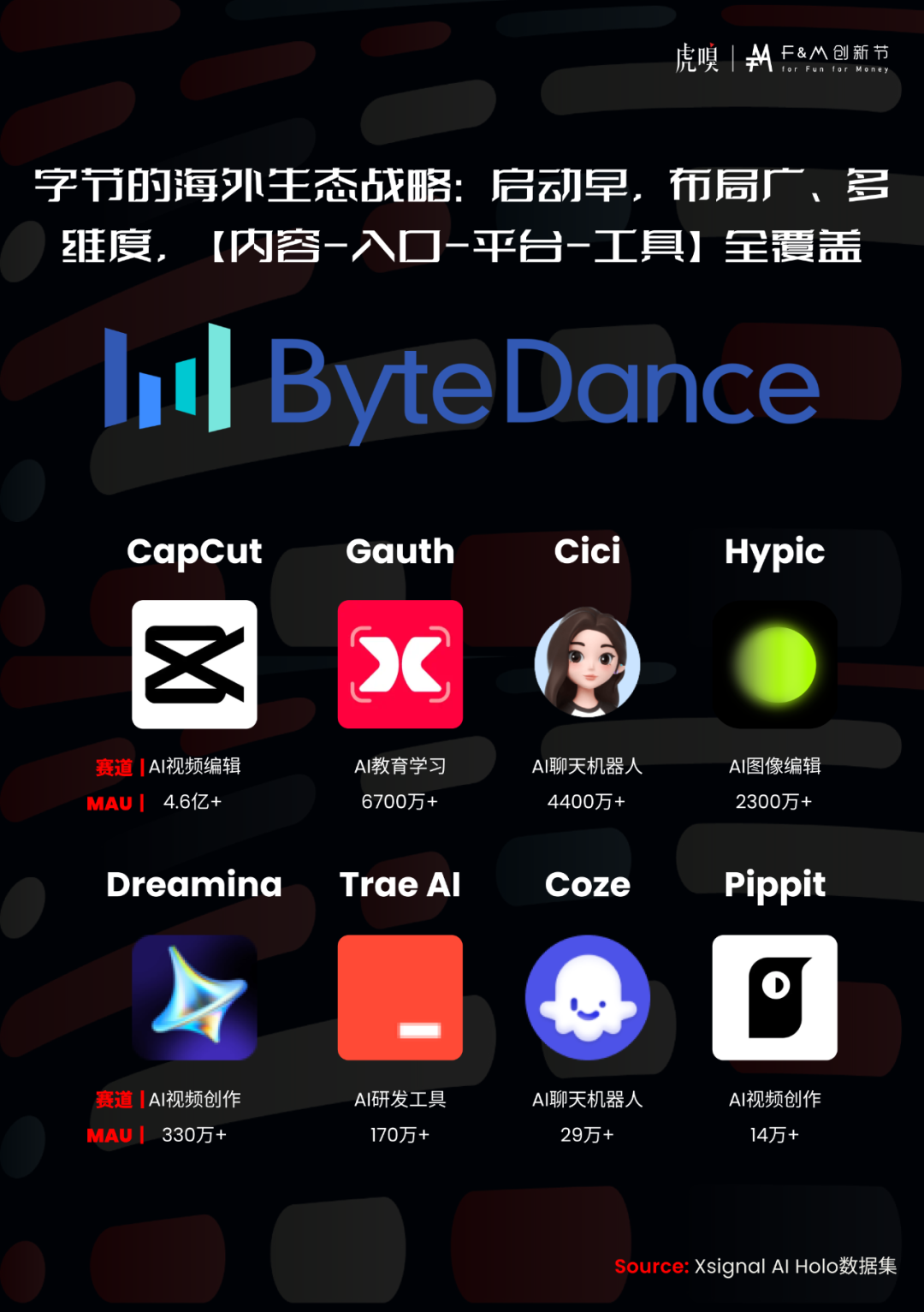 霸榜统治力:字节跳动独占3席矩阵协同:==万兴科技目前的出海战略核心是“ALL IN AI”与“矩阵化打法”,旨在通过新技术重塑其产品线。