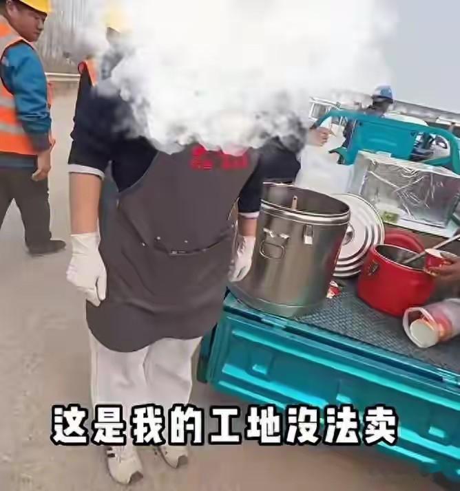 只见一位穿黑色衣服女子怒气冲冲的赶过来,走到男子面前怒斥:“这是我的工地,谁让你在这里卖饭的!”
