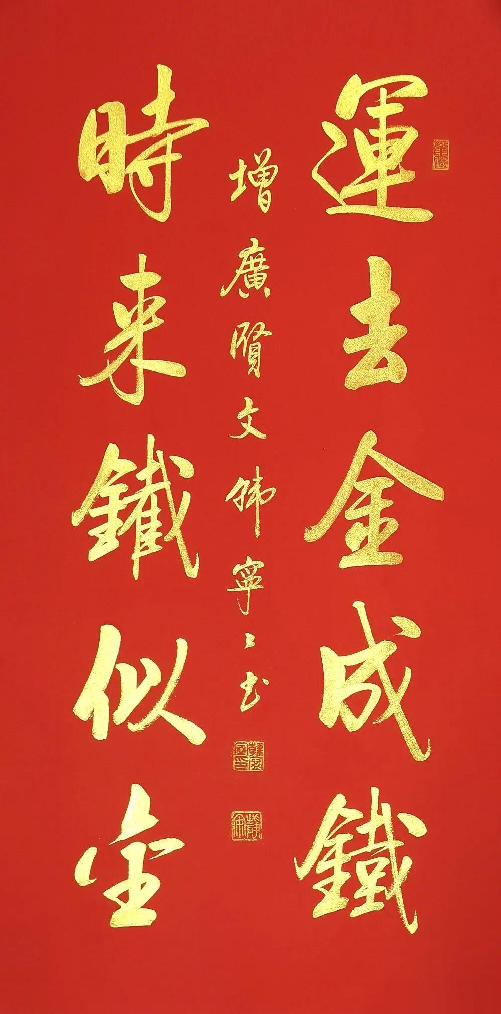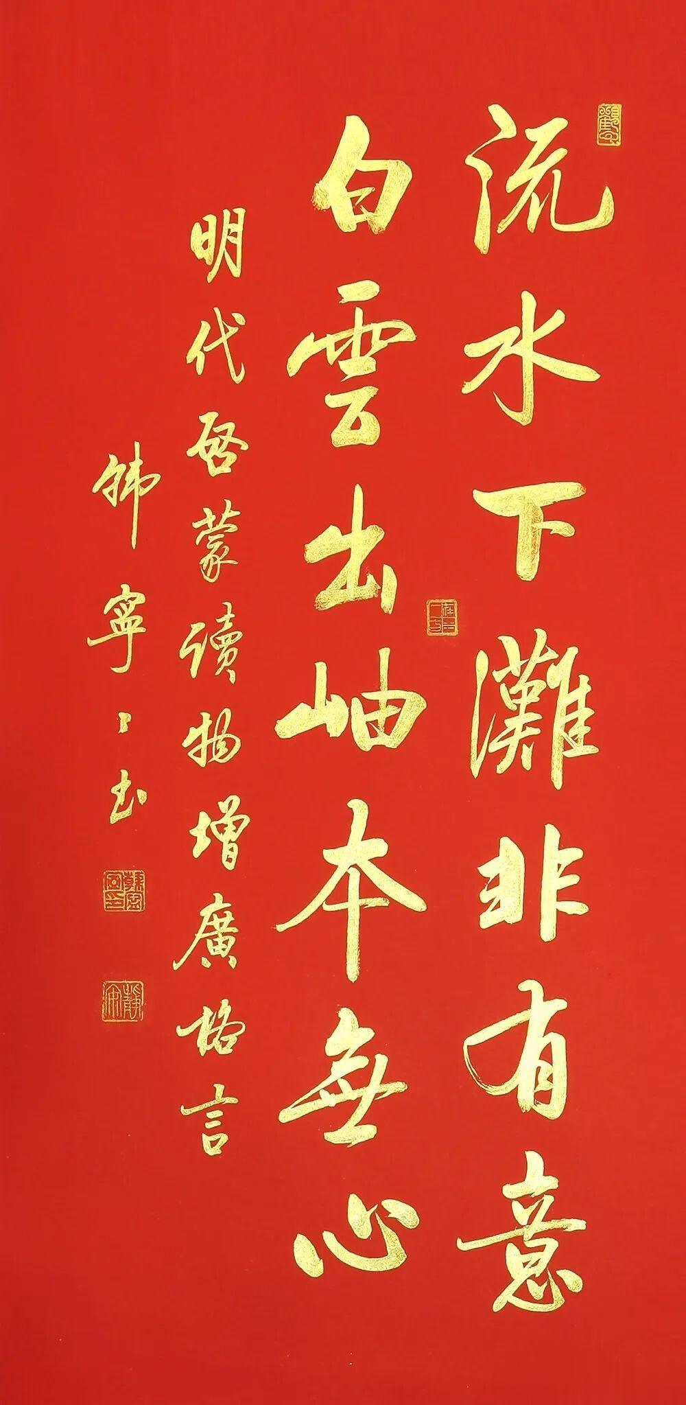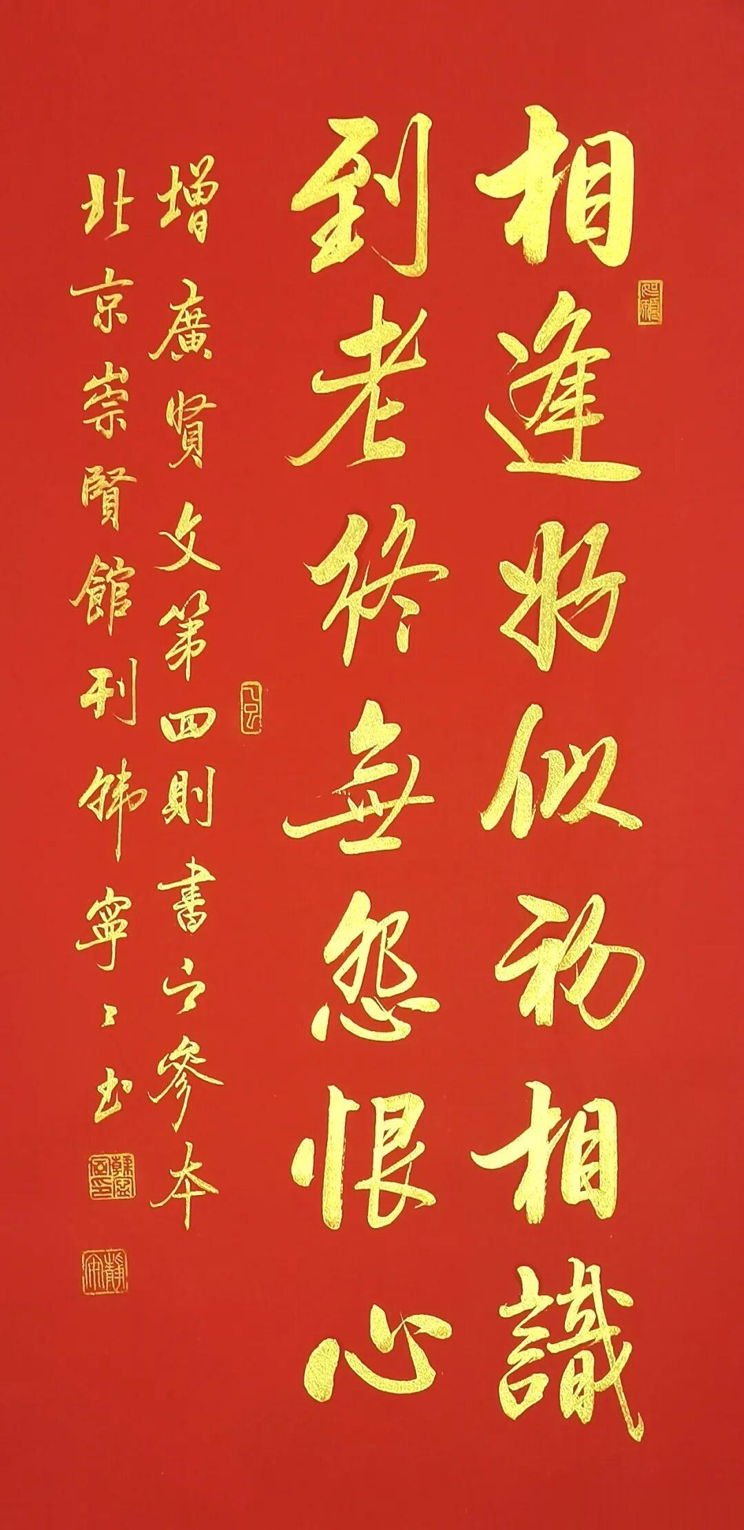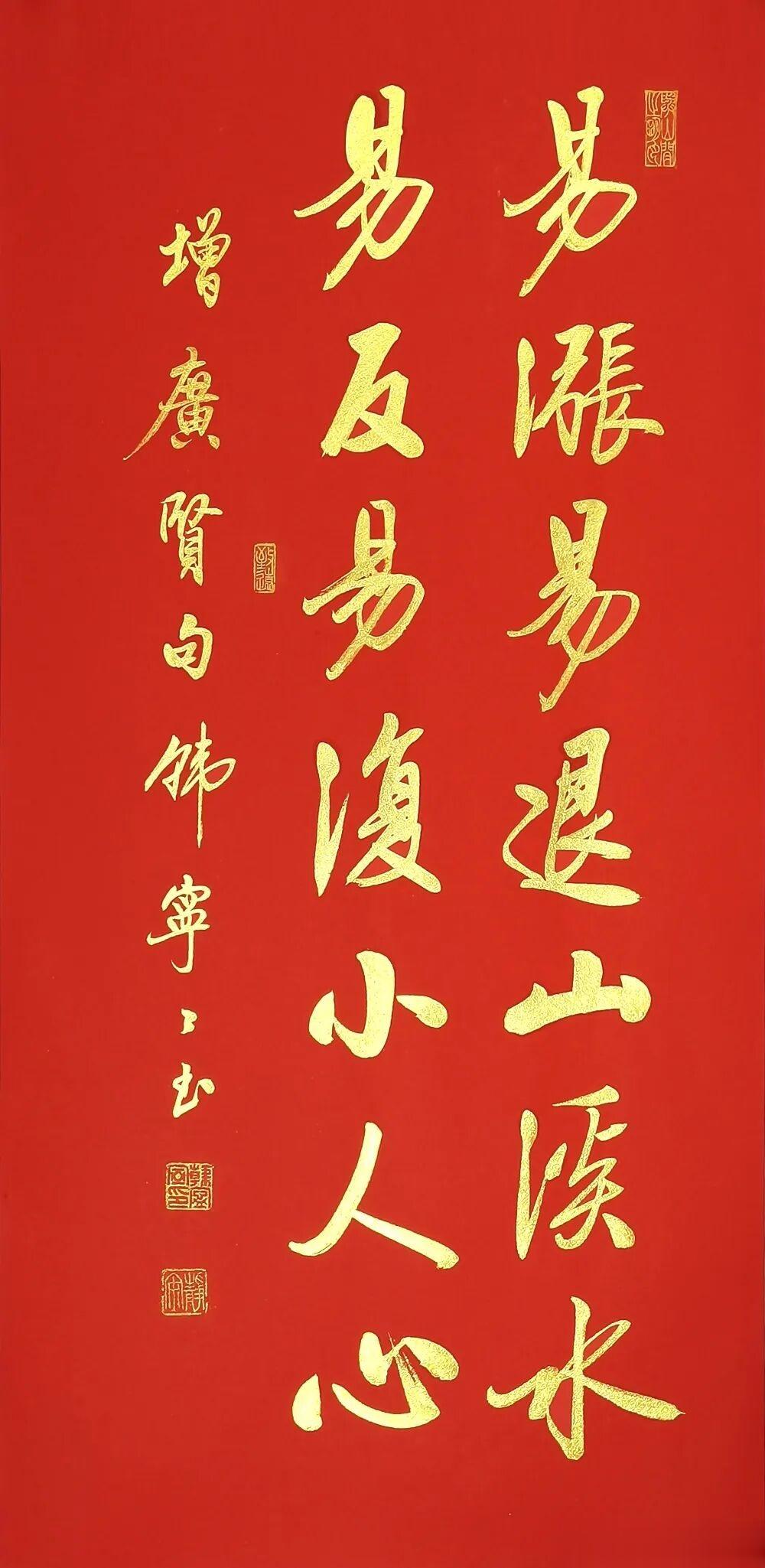 当千年处世智慧遇上当代女书家的笔底风华,韩宁宁老师这套《增广贤文》行书作品,便成了书法与国学完美交融的传世佳作。红宣为底,金墨作书,每一笔都藏着法度,每一字都透着雅韵,既是当代行书的精品范本,更是刻在中国人骨子里的文化传承。