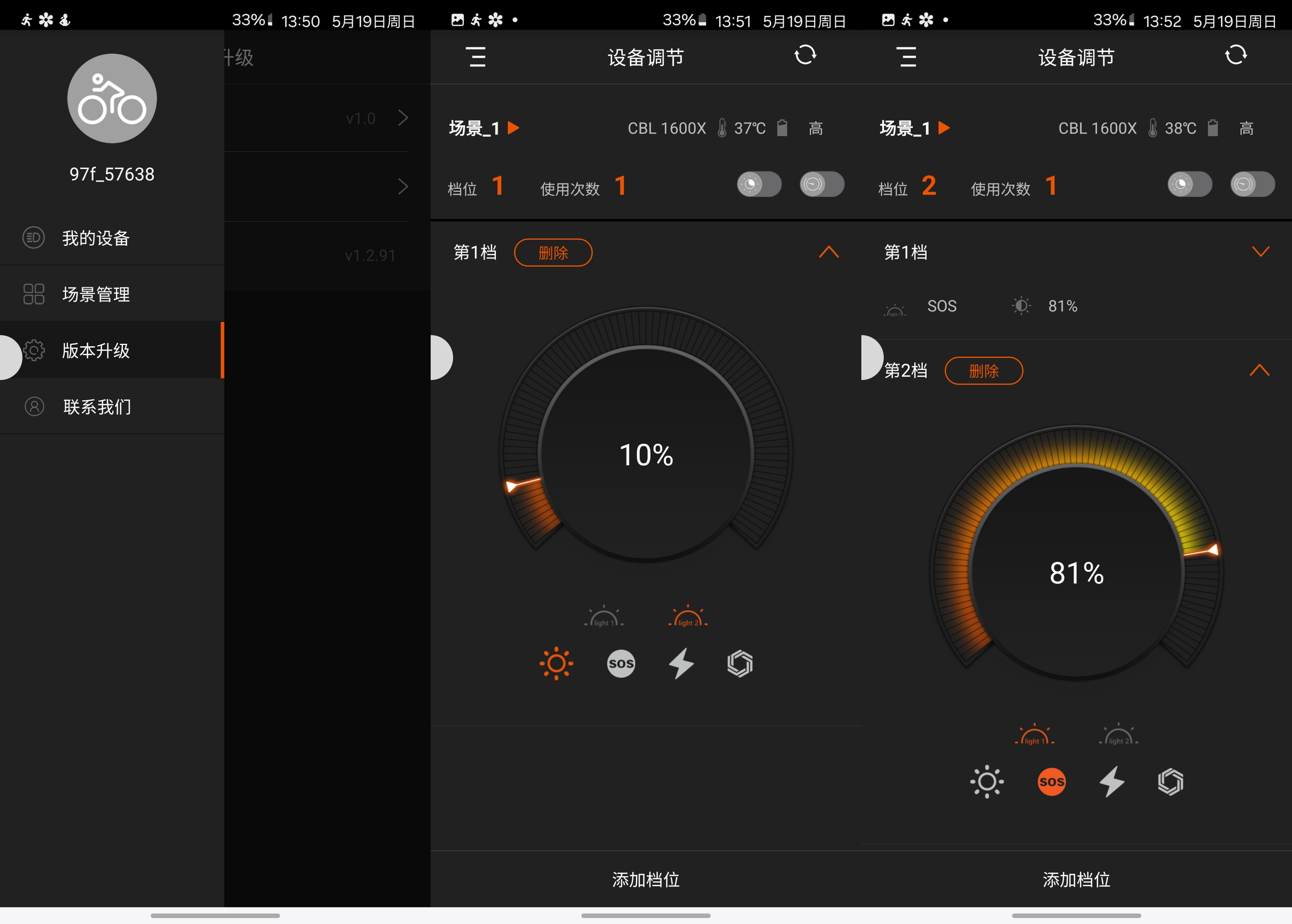 它凭什么作为新品?光看价格谈什么性价比?前后用了大概两周以后,开始有了不同的思考。首先,APP是真的好用,设置不同的档位不等于“简单的无极调光”;可以理解为对于车灯的预设置。包括后期,设备的固件升级,APP也是必不可少的。亮度我觉得1600完全足够了,日常骑行基本在两档之间的切换。