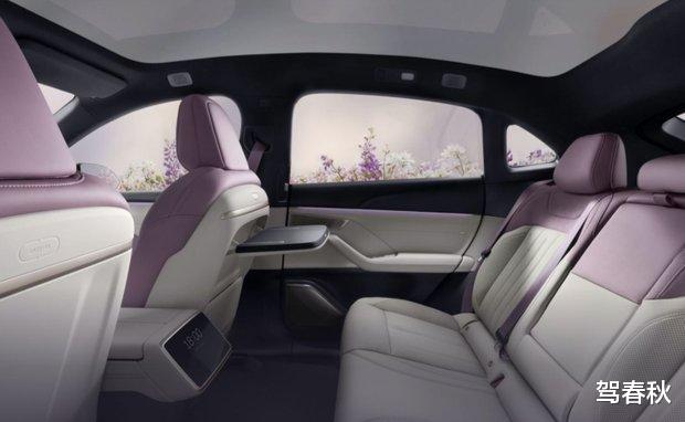 内饰部分,新车带来全新设计亮点,首次采用丁香紫与柔白1:1错位双拼内饰配色方案。前排内饰采用前后拼接工艺,后排则运用上下拼接设计,以此强化车内空间层次感,再搭配高级大理石纹饰板,尽显精致质感。配置方面,新车新增后排右侧折叠桌板,同时标配17.2英寸3K高清大屏与13英寸AR-HUD抬头显示系统。