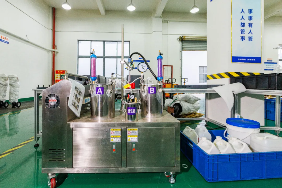 为源物联智能消火栓帽盖部分内置智能电子模块,配合智能消火栓监控管理软件,实现消火栓运行状态、用水量、温压参数和异常情况的数据采集、远程传输和智能化监控,达到消火栓的信息化、智慧化管理。但智能电子仪表部分运行一定时间需要更换电池,为了延长电池的稳定运行时间,生产车间将电池等主要部件进行弹力胶灌封,确保生产的质量与效率,同时也延长了电池的使用寿命。