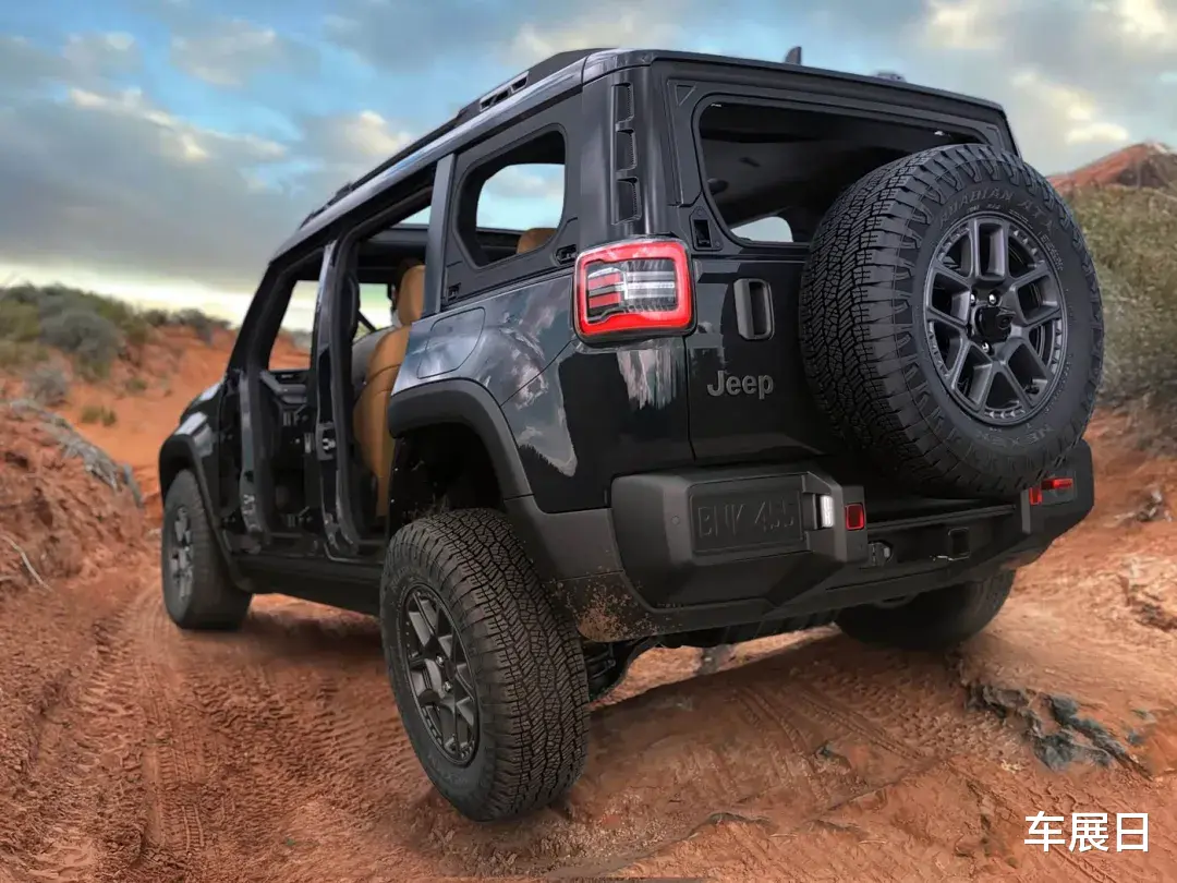 它的车门、后车窗/尾门玻璃可拆卸,无需工具,外观采用Jeep家族式风格,可发光七孔格栅,标配双片式天窗,还可选装Sky One - Touch电动敞篷顶。Moab版本配33英寸越野胎,离地间隙约23.11cm,接近角33.8度、离去角33.1度、通过角23.3度。