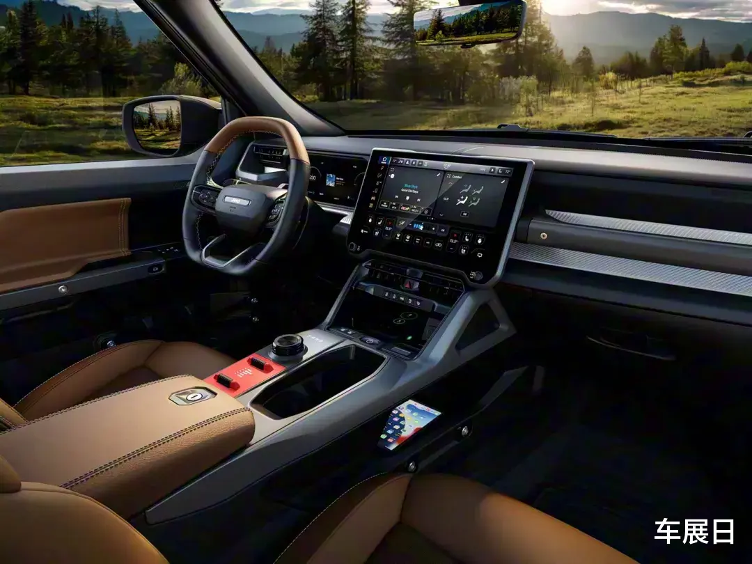 车内用料为耐用越野级材质,设计横平竖直,标配12.3英寸液晶仪表和14.5英寸中控屏,仅保留少数必要物理按键,Moab版本多地形系统提供五种驾驶模式,含Rock模式。