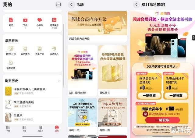 说真的,华为阅读双十一的活动真的太香了,也建议大家赶紧入一个。在华为阅读App里,点“我的”,然后进入“活动中心”就能找到入口。
