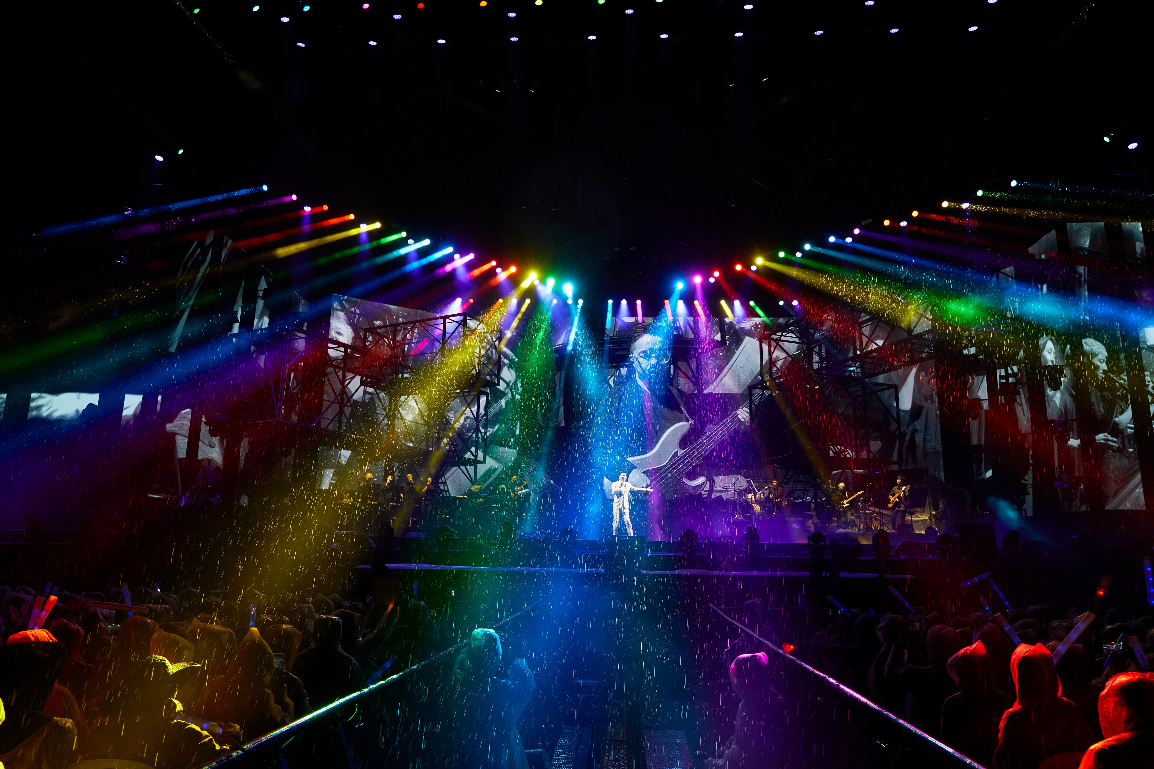 昨晚的常州站演唱会,正好也是和亚运会开幕同一天。今年未来式2.0巡演首场就在杭州举行,当时大莲花体育场内除了阿哲的歌声,还有着亚运会吉祥物宸宸、莲莲、琮琮的身影,他们之间的可爱互动,也为杭州站演出增添了欢乐的氛围。
