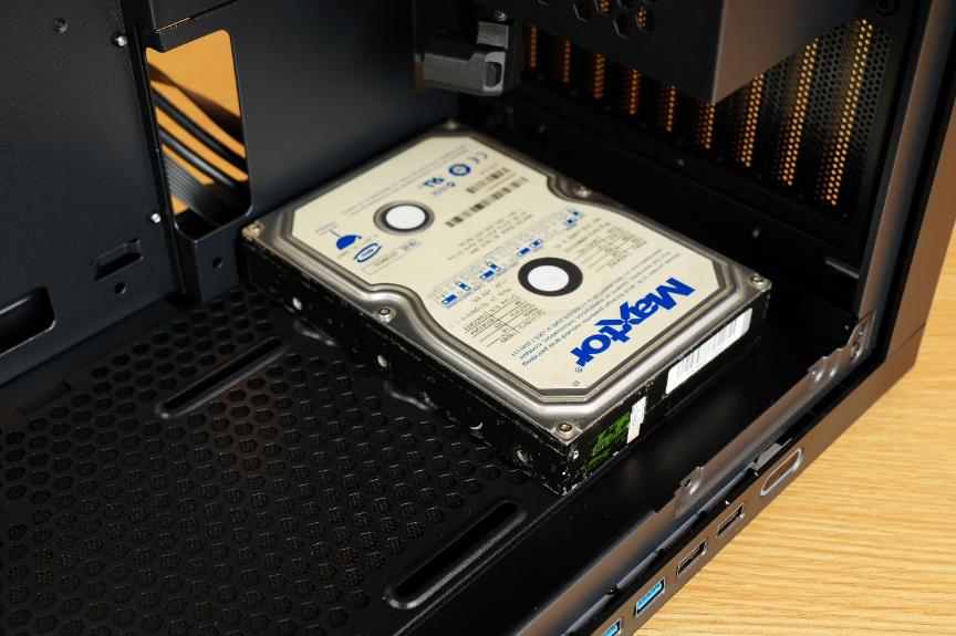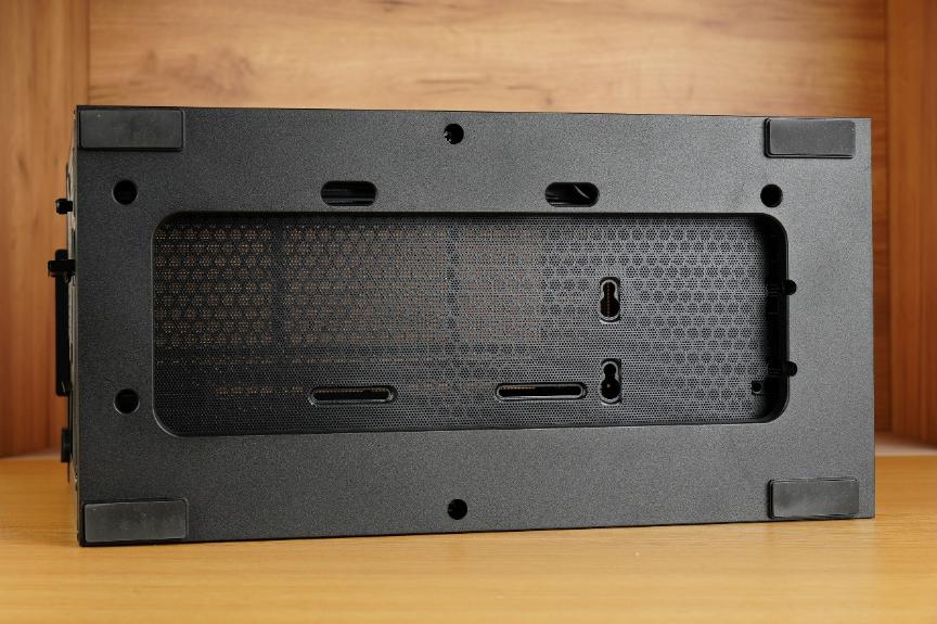 机箱底部还设有风扇以及硬盘安装位置,可以选择安装3把120mm规格的风扇或者是可以额外安装1个3.5寸HDD硬盘。