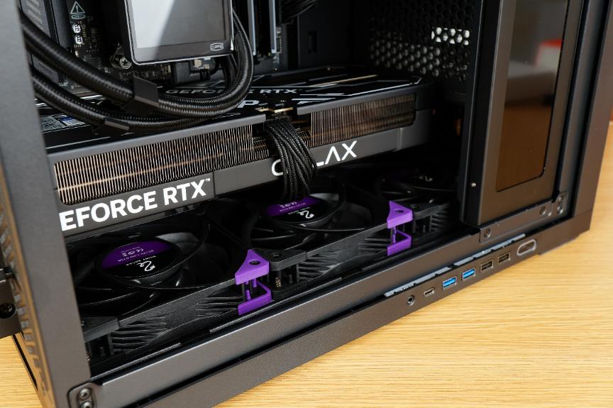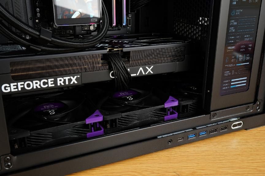 显卡方面搭配的是影驰 GeForce RTX 5070 金属大师 黑金版 OC,全金属的外壳和纯黑的外形非常适合用来搭配闪鳞G600。