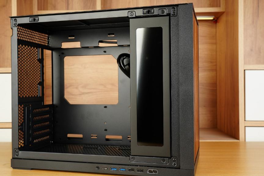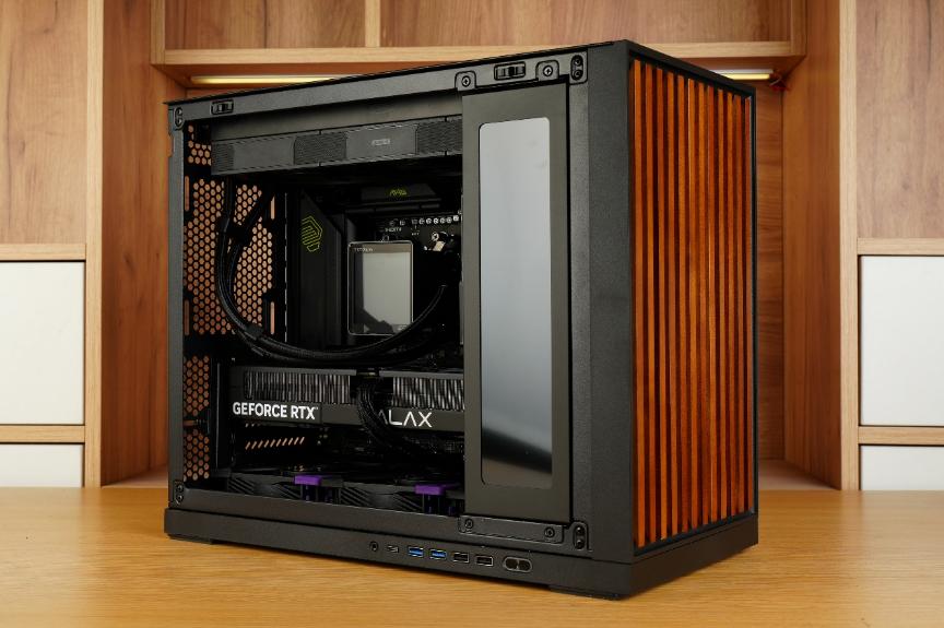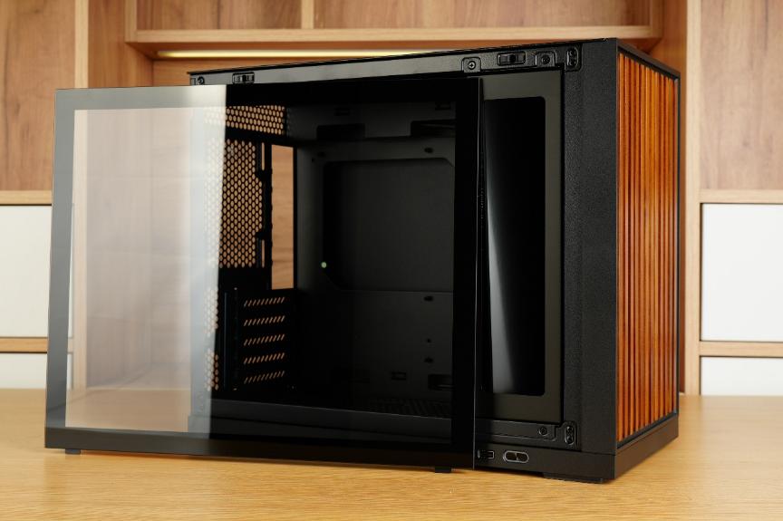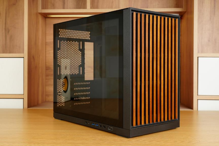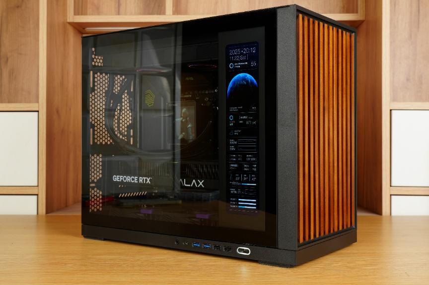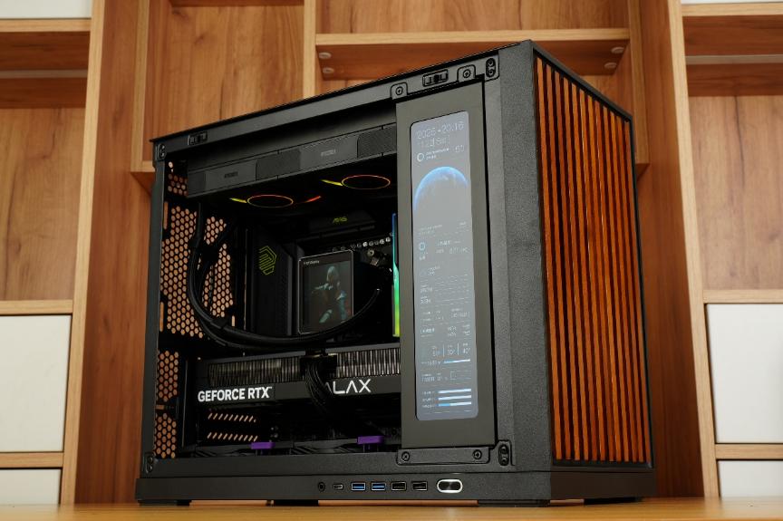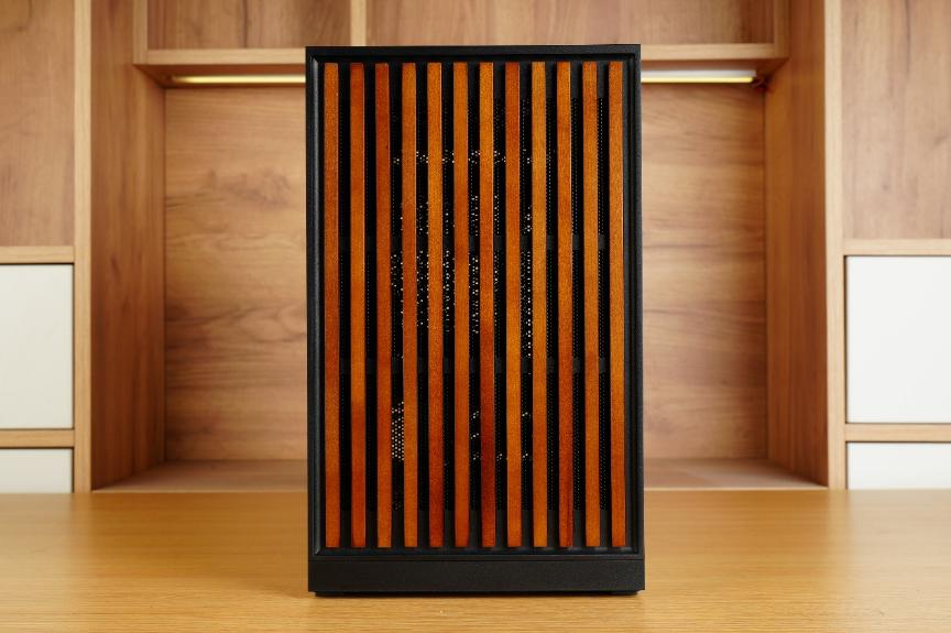 机箱选定闪鳞G600黑色副屏版,其实木格栅前面板很是亮眼——温润的木质肌理带着自然质感,刚好契合当下流行的家居实木风,摆在家中无需费心搭配,便能轻松融入各式装修风格,适配度拉满。