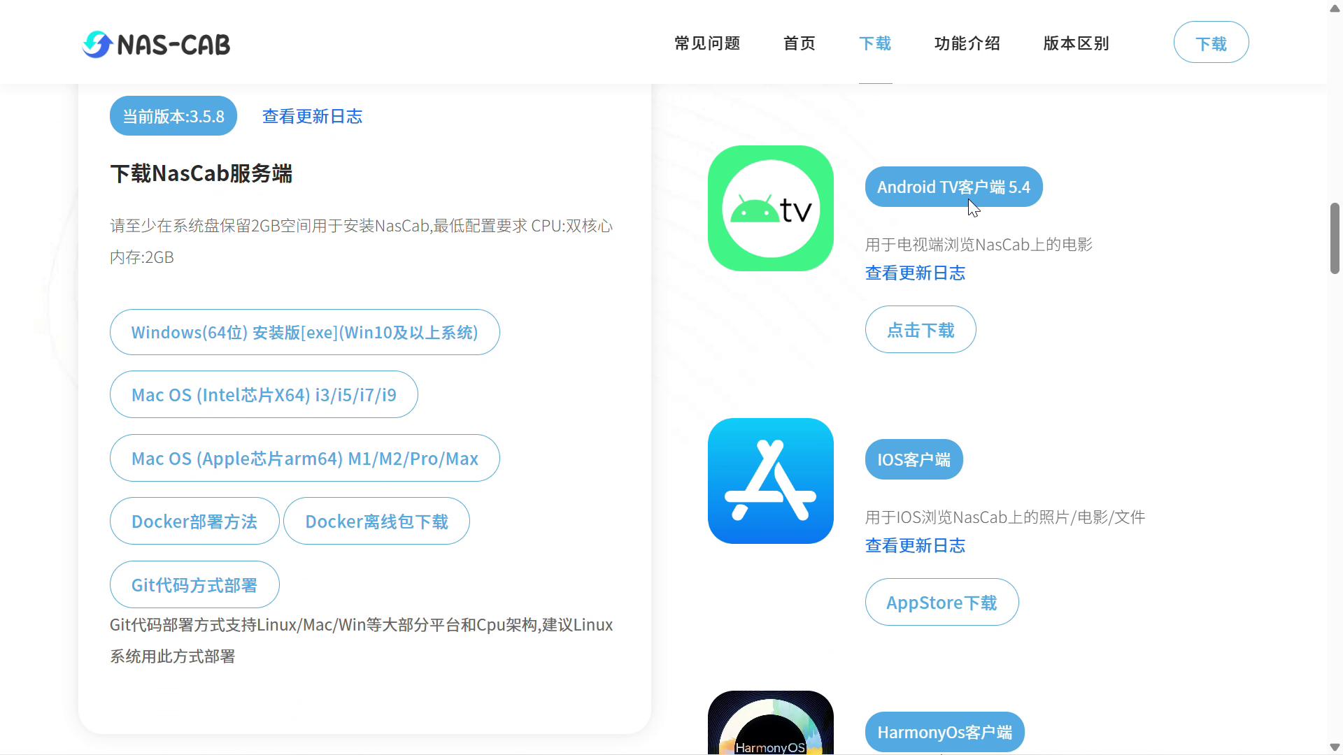 先从官网下载NASCAB的服务器端,这里选Windows64位安装版,因为零刻MEmini预装的是Windows11。