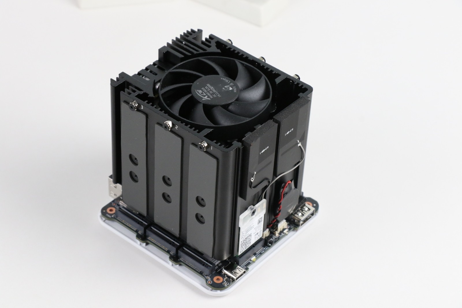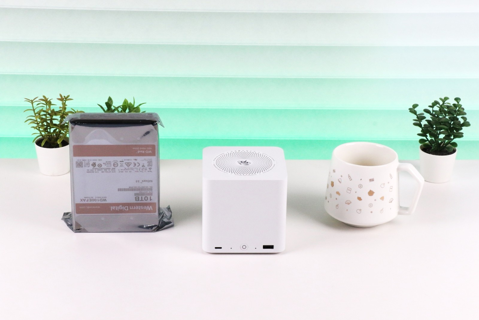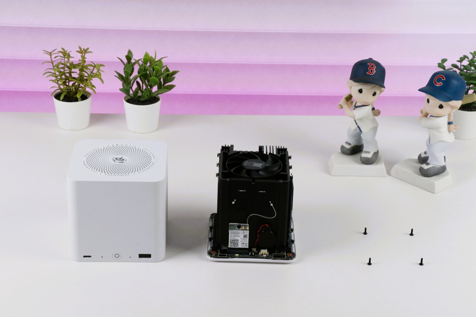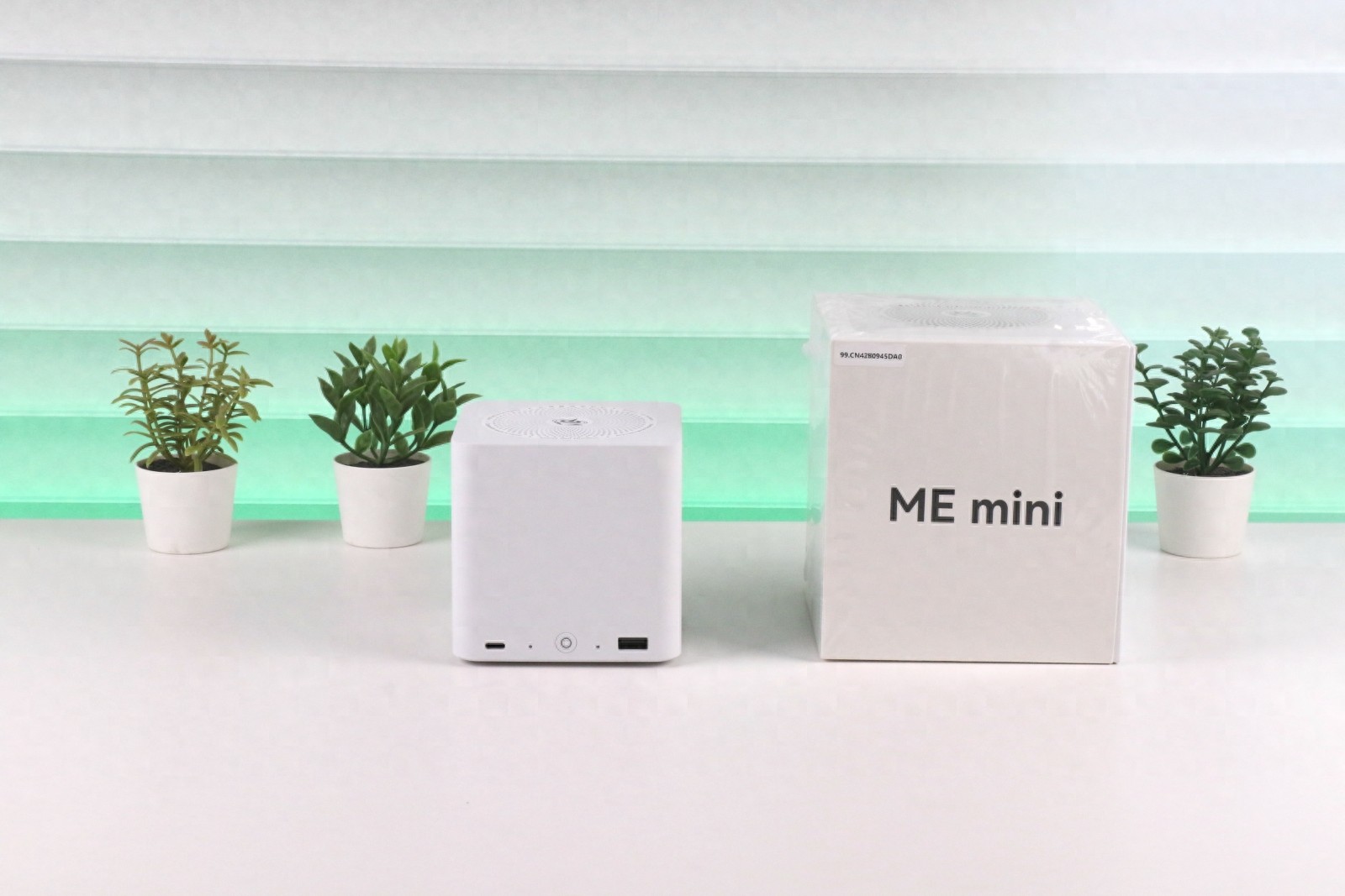 零刻ME mini的体积仅有99毫米*99毫米*98.3毫米,外形设计接近一个完美的正方体。如此迷你的机身内,不但内置了电源,更能容纳高达6片M.2 2280规格的NVMe固态硬盘,确实是匠心制作。