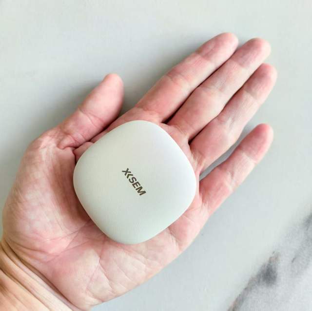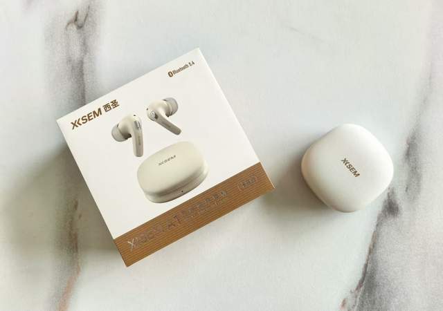 确实,收到货之后满是惊喜,特别喜欢充电仓的这个布纹设计,个人感觉布纹绝对是300元以下耳机的神配置了,再配上卡其色,将整个耳机衬托的非常高档,充电仓很小很精致,放在手中都只占了中间的一小部分,正面是西圣的烫金logo,底部有Type-C充电口,整个外观浑然一体,尤其适合学生党使用,性价比和颜值都很在线。