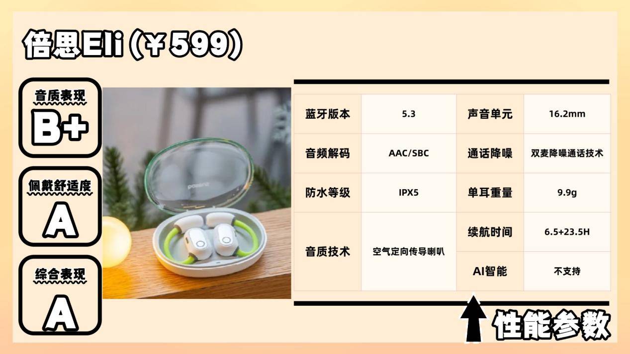 通话与连接性能上,Eli搭载双麦克风阵列,结合ENC技术与AI智能降噪,有效提升通话清晰度。此外,它支持倍思DCLL双通道低延迟、BSC智能双连以及BRC闪充技术,确保连接稳定、响应迅速,充电效率更高。