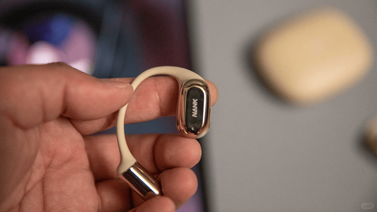 佩戴舒适度方面,不少开放式耳机对眼镜用户不够友好。南卡针对这一痛点邀请数百位眼镜佩戴者参与测试,最终推出EAA2.0悬停结构,通过优化耳挂曲线与受力点分布,使耳机轻盈悬挂于耳廓与镜腿之间,大幅减少压迫与摩擦,长时间佩戴也依旧舒适稳固。