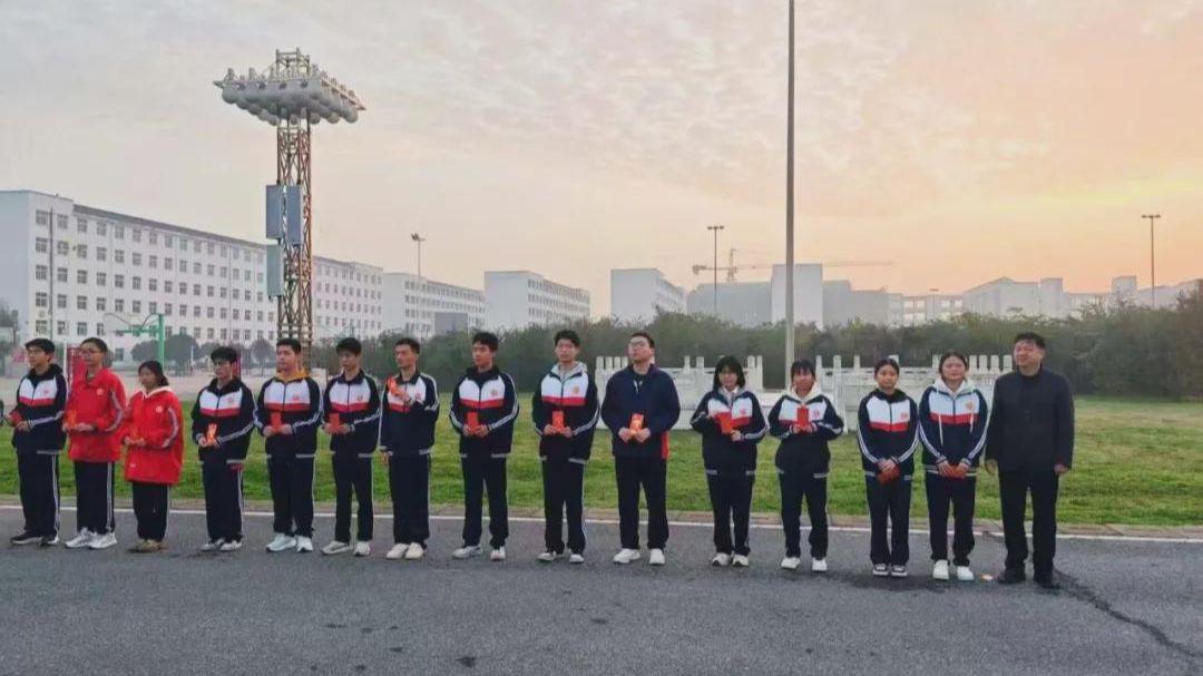 此次升旗仪式既是一次激励,更是一次动员。它如强心之剂,为攻坚阶段的高三学子注入了坚定信念与前行力量。全体高三师生必将以此为新起点,凝心聚力,以更加饱满的热情、昂扬的斗志和扎实的作风,共同奔赴明年六月的辉煌之约!(刘泽鲲)