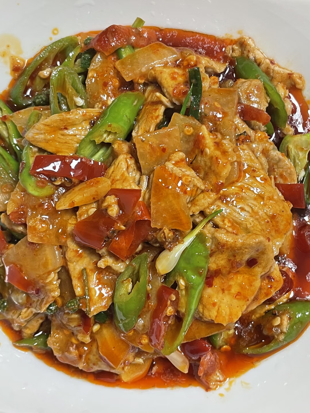 终极合体:加1勺生抽、半勺醋、少许糖调味,泡椒水是天然调味剂,比任何鸡精都鲜美。最后淋入水淀粉勾薄芡,让汤汁像琥珀般包裹每片肉,撒上葱花即可出锅。