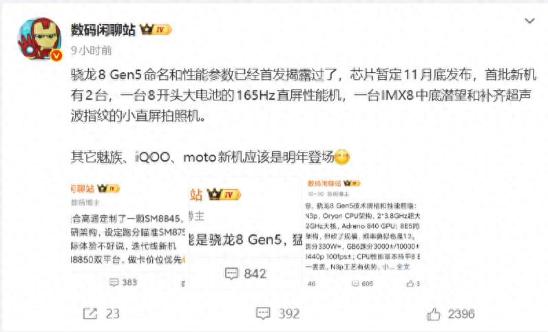 2025年11月,移动芯片市场迎来关键节点——高通骁龙8 Gen5处理器预计将于本月底正式发布,首批搭载该芯片的新机阵容已基本确认。这款定位中端市场的旗舰级芯片,凭借与第五代骁龙8至尊版同源的3nm制程工艺与自研架构,正以“旗舰性能下放”的姿态,重新定义2000-3500元价位段的竞争格局。