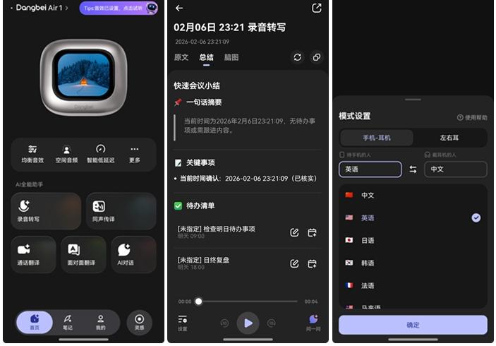 此外,它还内置了丰富的AI功能,配合充电仓的妙控屏,能实现实时翻译(支持190种语言)、会议纪要自动生成、录音转写等功能,不管是日常沟通还是办公,都能派上大用场,堪称“生产力神器”。