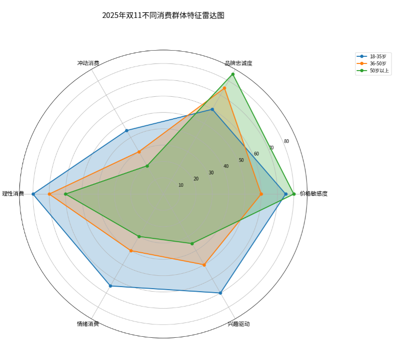 4.2 消费群体结构与偏好品类的分化2025年双11期间,不同消费群体呈现出明显的分化特征。从年龄结构看,18-35岁的年轻群体仍是消费主力军,占据整体消费者人数的76.5%,在服饰鞋包、美妆个护、数码产品等品类的消费中占比超过60%。Z世代消费者作为新兴消费力量,展现出独特的消费特征:他们的购物心态呈现两极分化,既有豪掷千金的奢玩族,又有物欲极低的极简派;为情绪价值和兴趣买单已成为年轻人消费的重要理由,占比超过40%。