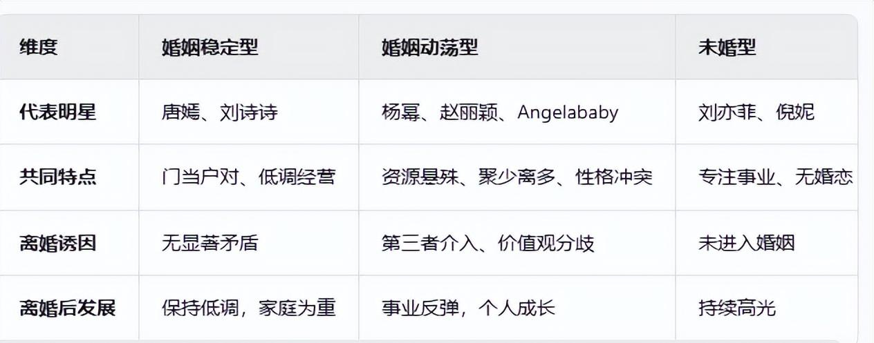 杨幂刘恺威的“女强男弱”,赵丽颖冯绍峰的“妈宝男”困扰,黄晓明Angelababy的貌合神离,都反映了娱乐圈婚姻的复杂性。