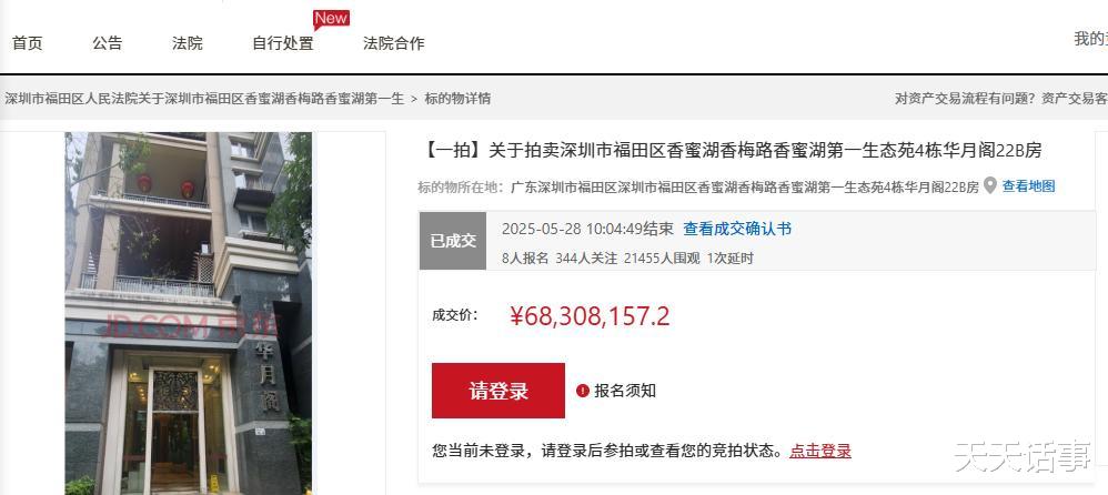 近日,在深圳市司法拍卖市场上,迎来了一宗非常抢手的房产拍卖,一套位于深圳市福田区香蜜湖香梅路香蜜湖第一生态苑4栋华月阁22B房被拍卖。这套房子因为房东欠别人钱不还而被拍卖。房子评估价4178.5196万元,起拍价则是3342.8157万元。也就是在评估价基础上打八折进行拍卖。拍卖开始后,吸引了8个人各缴纳334万元保证金报名竞拍。片每次最低加价幅度是16万元,本来以为这套房子会经过很多次加价竞拍才成交。可没有想到拍卖只出现了3次出价就结束拍卖了,但是成交价却高达6830.8157万元,成交价比起拍价高出了3488万元,溢价率高达104%。