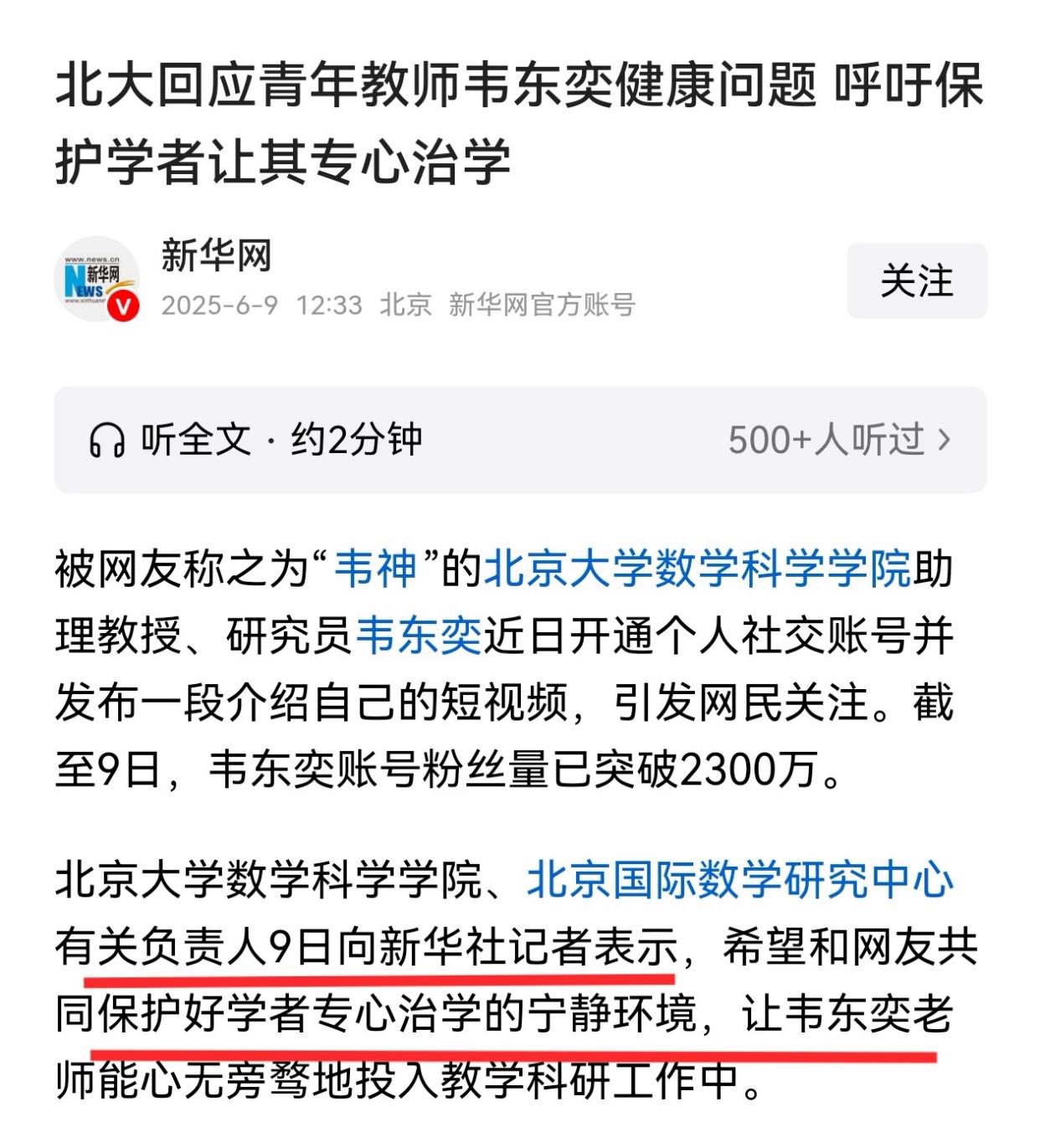 无论如何,还是希望韦神能专注于数学研究,不要被社交账号所影响,也希望亲属能尊重韦神的意愿,保护韦神的生活和工作环境。
