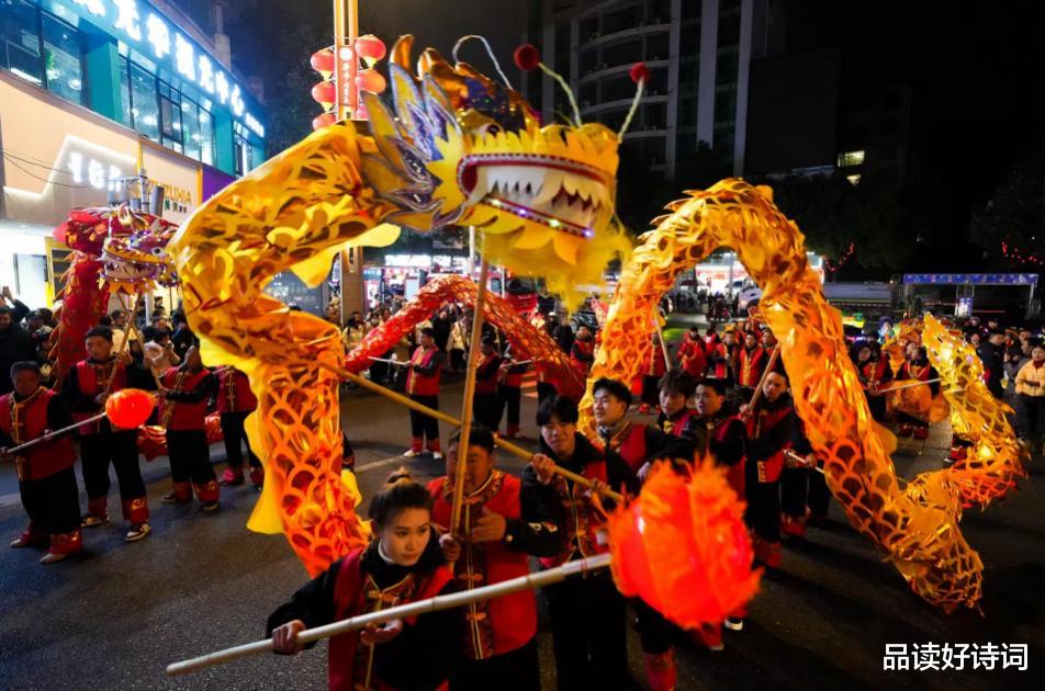 满眼花灯满眼娇,龙腾狮舞庆元宵。