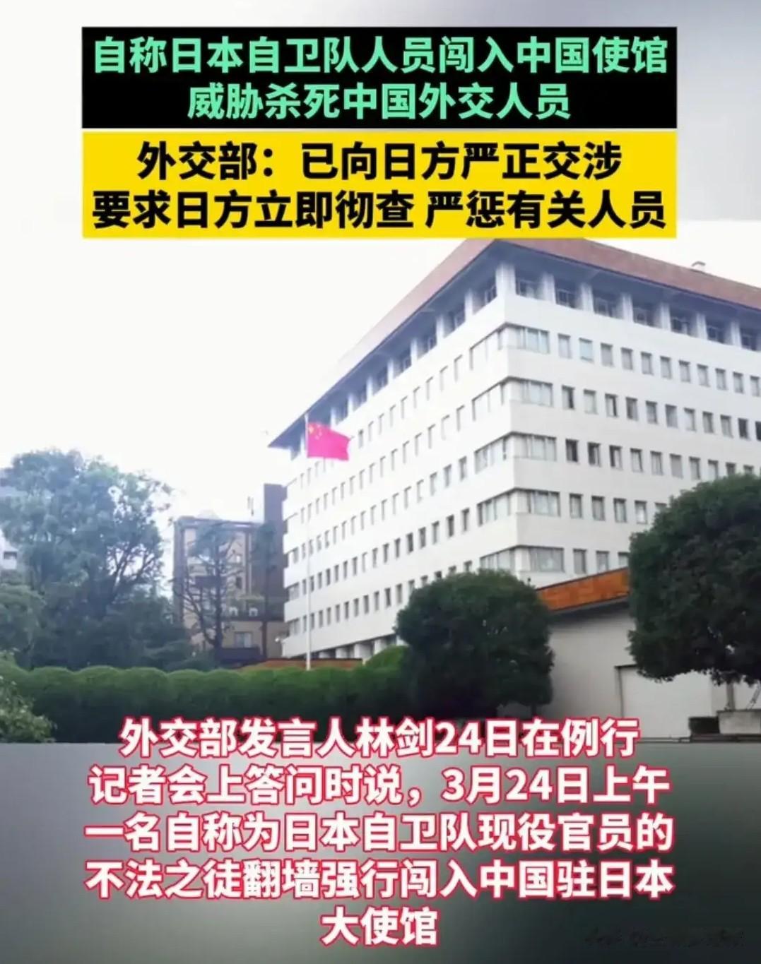 今天被这则新闻震惊,当一名自称日本自卫队现役官员的极端分子,翻墙闯入中国驻日本大使馆,甚至叫嚣要以“神”的名义杀害中国外交人员,如此明目张胆的行为,在当下日本国内的政治环境下这早已不是孤立的暴力事件,而是其国内反中情绪持续发酵的危险缩影。