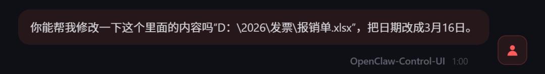 然后故意让OpenClaw去改里面一个报销单的日期,改成3月16日。