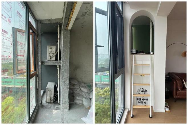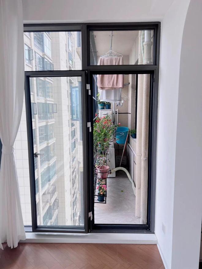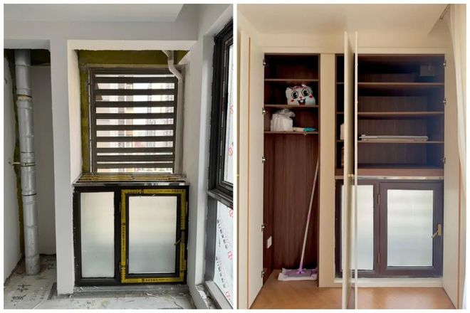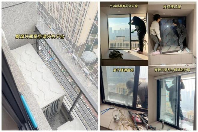 方法很简单:将原本的外开窗更换成大面积的推拉窗,并安装不锈钢翻盖板和防护网,上面晾衣服,下面晒鞋子,实用性拉满。