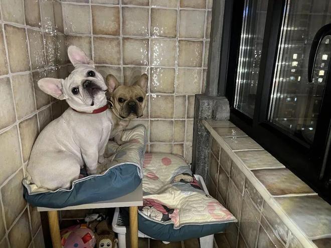像网友@孤岛的家,就给外机平台重新贴上瓷砖,原有的百叶隔断换成玻璃窗,再放上狗窝和玩具,立马就变成了狗狗的“豪华单间”。
