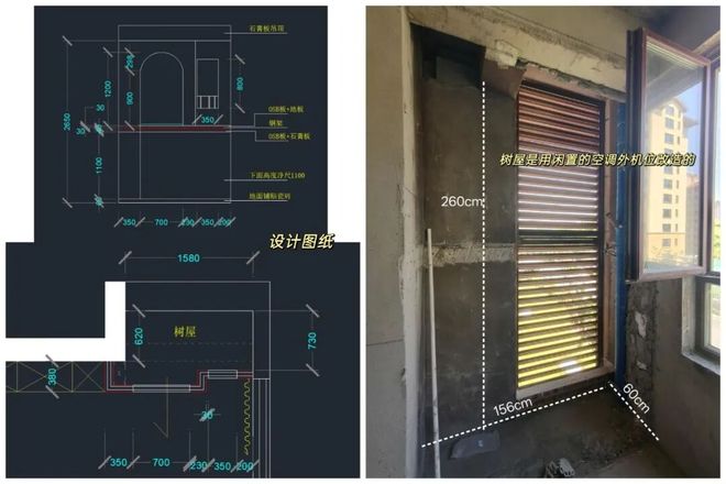 网友@年年又时时就将原有的空调外机平台,改成了一个上下两层的树屋,简直是把童年梦想照进了现实。